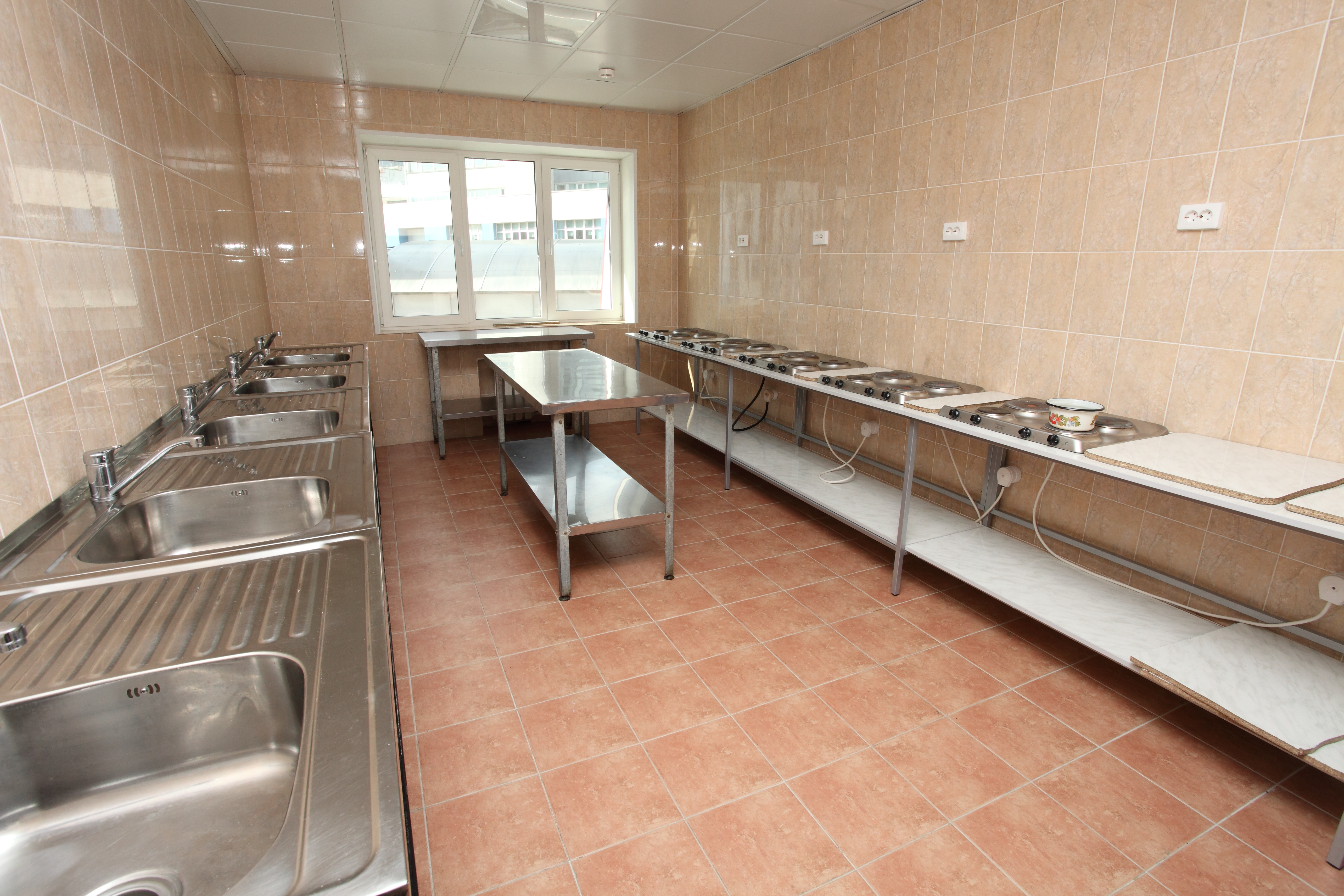 На каждом этаже общежития имеются умывальная комната, две кухни, два туалета, гладильная и душевая. Кухни оборудованы электрическими водонагревателями, электрическими варочными панелями, раковинами с холодной и горячей водой, столами для приготовления пищи.
