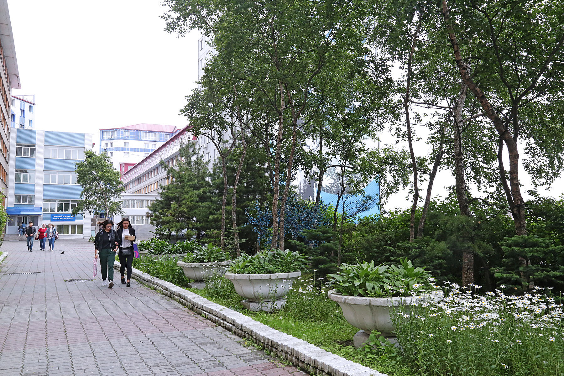 Общежитие №4 - секционного типа, расположено в живописном районе города, вблизи видовая площадка с морским побережьем. Рассчитано на 442 благоустроенных койко-места. Адрес: г. Владивосток, ул. Добровольского, 20 (ост. «Клумба» р-н бухты Тихой, автобусы до центра города №31, №79).
