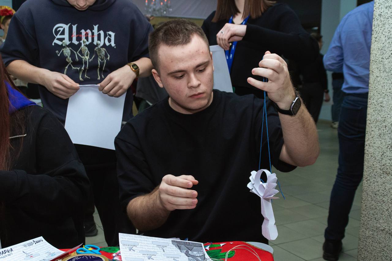 На станциях гости пели колядки, создавали уникальные снежинки, участвовали в гонках на валенках и смогли узнать, что их ждет в новом учебном году, случайно выбрав шуточное предсказание в книге. На мастер-классе «Ангелочек» участники смогли своими руками создать символ Рождества – маленького ангела.