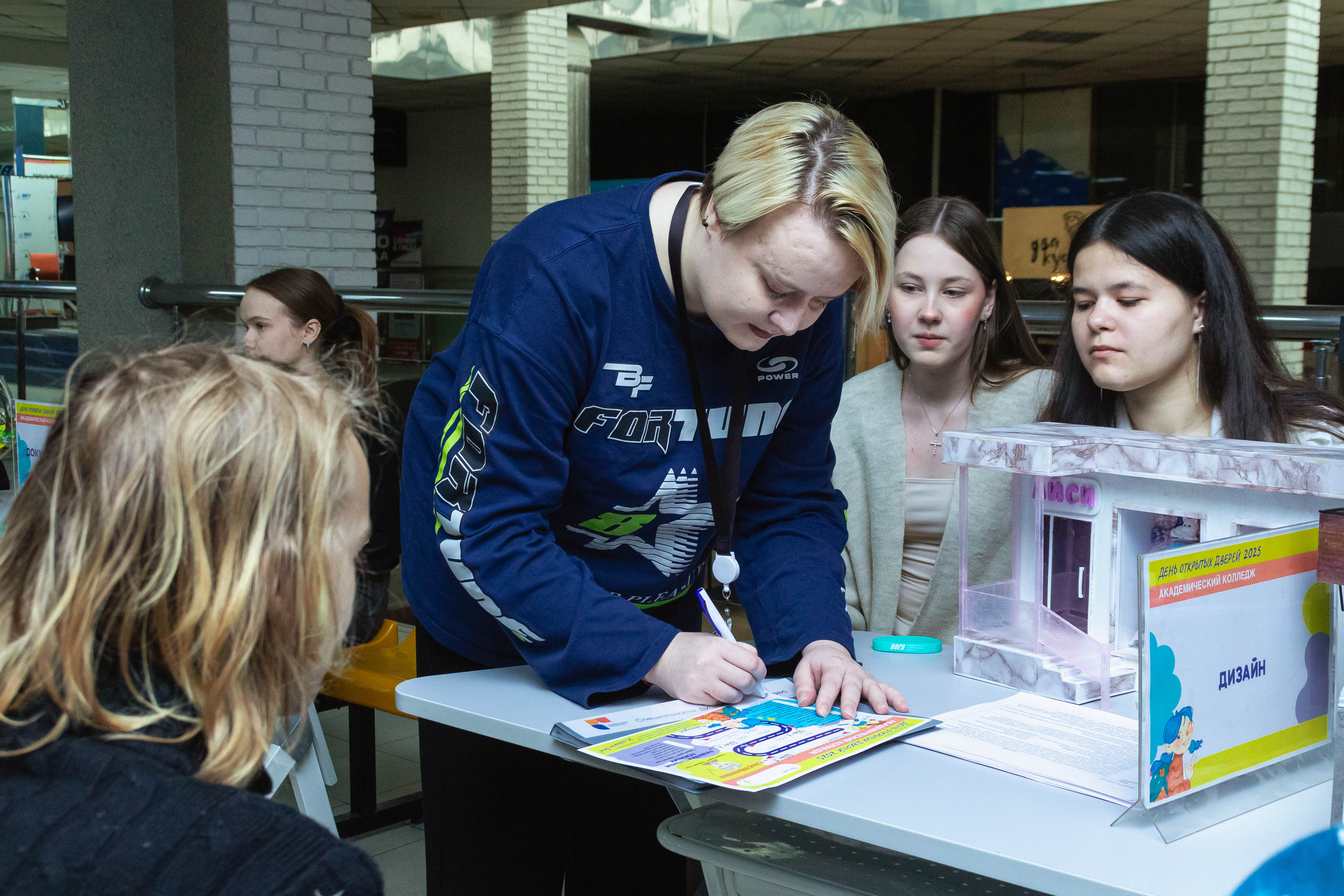 В минувшие выходные в Академическом колледже ВВГУ прошел день открытых дверей. Для знакомства с университетом и направлениями подготовки в колледже были организованы тематические станции, на которых ребята смогли пройти профориентационный тест, попробовать себя в разных профессиях, а будущие дизайнеры приняли участие в пробном творческом испытании. Подробнее рассказываем в нашем материале.