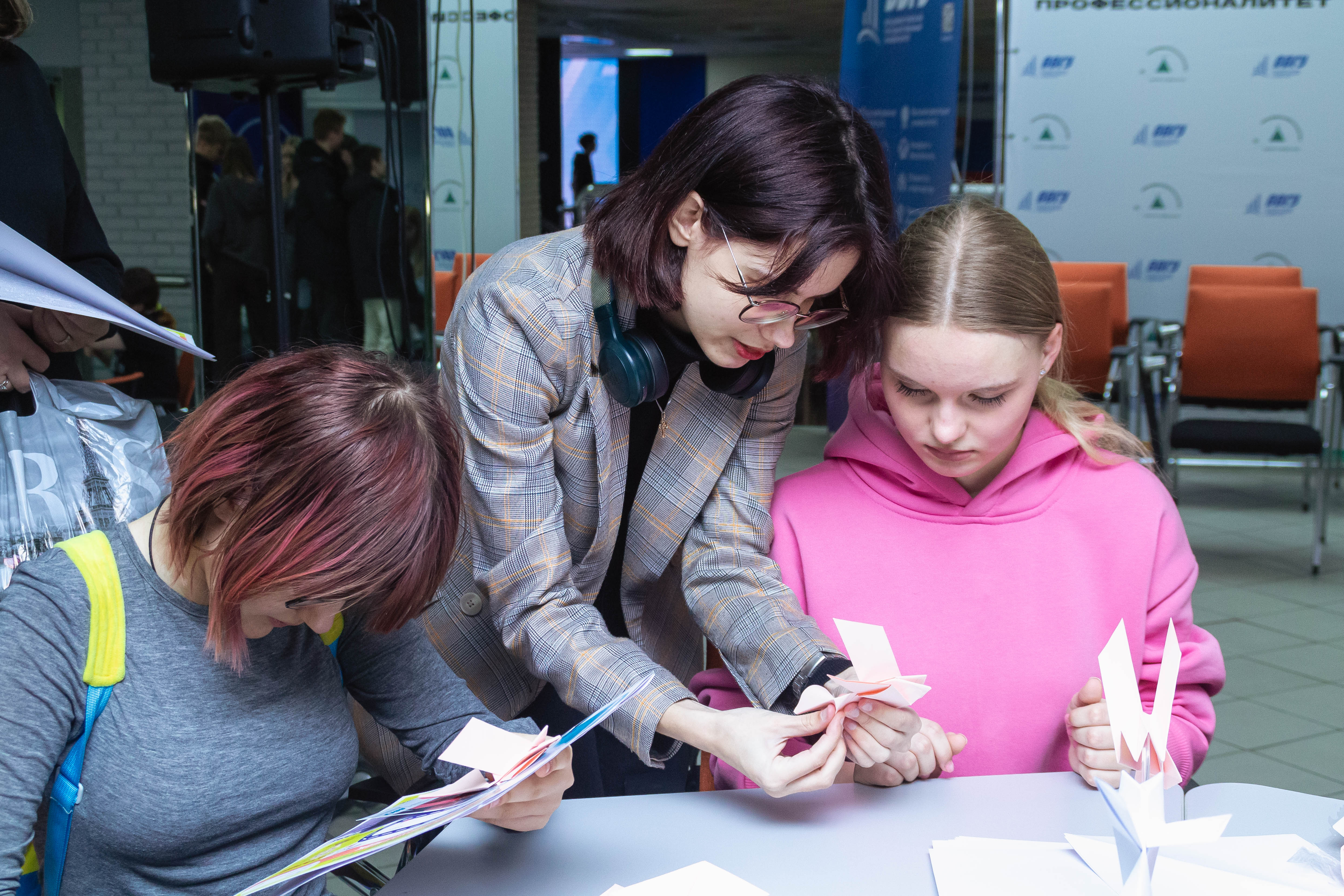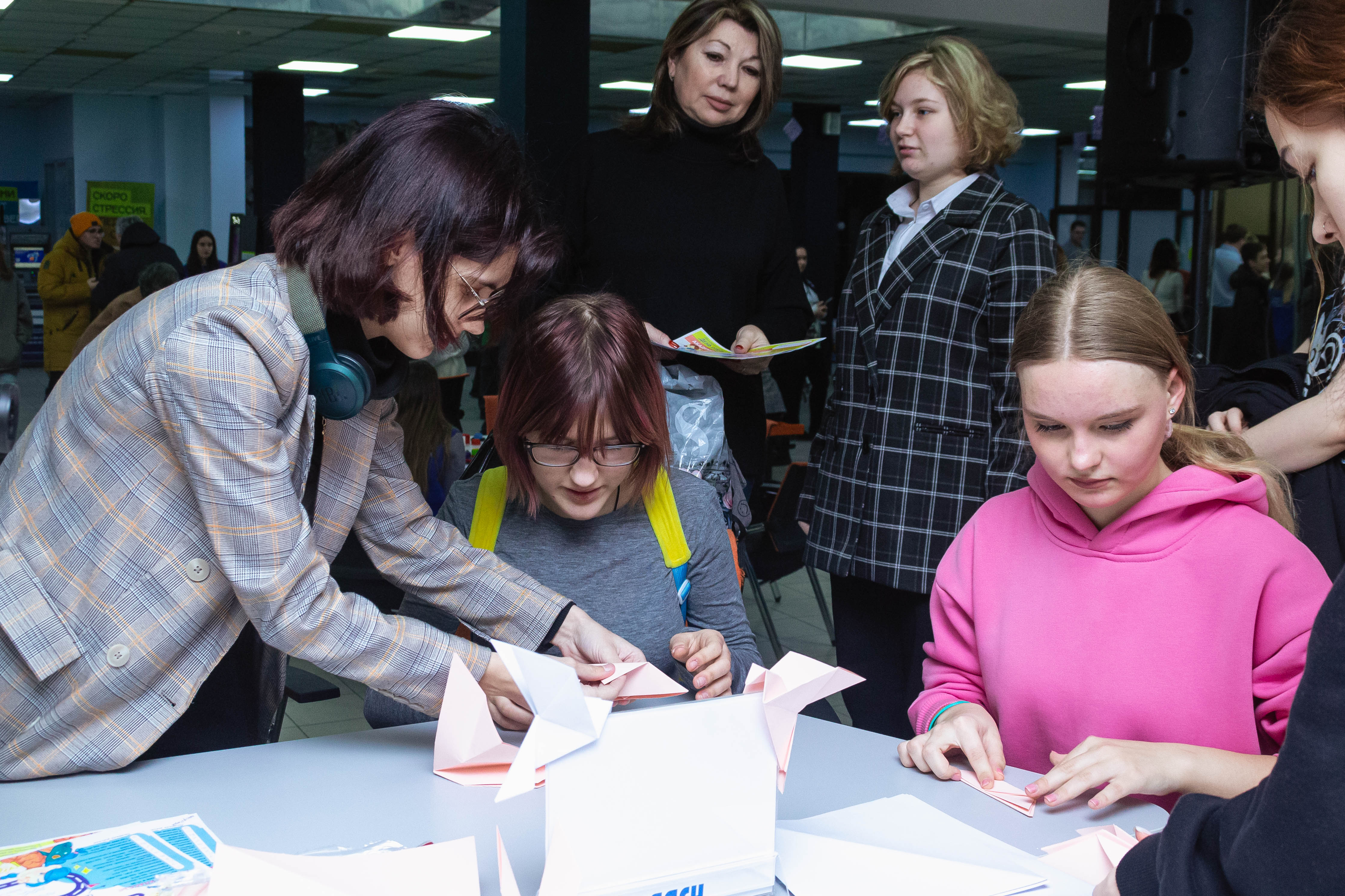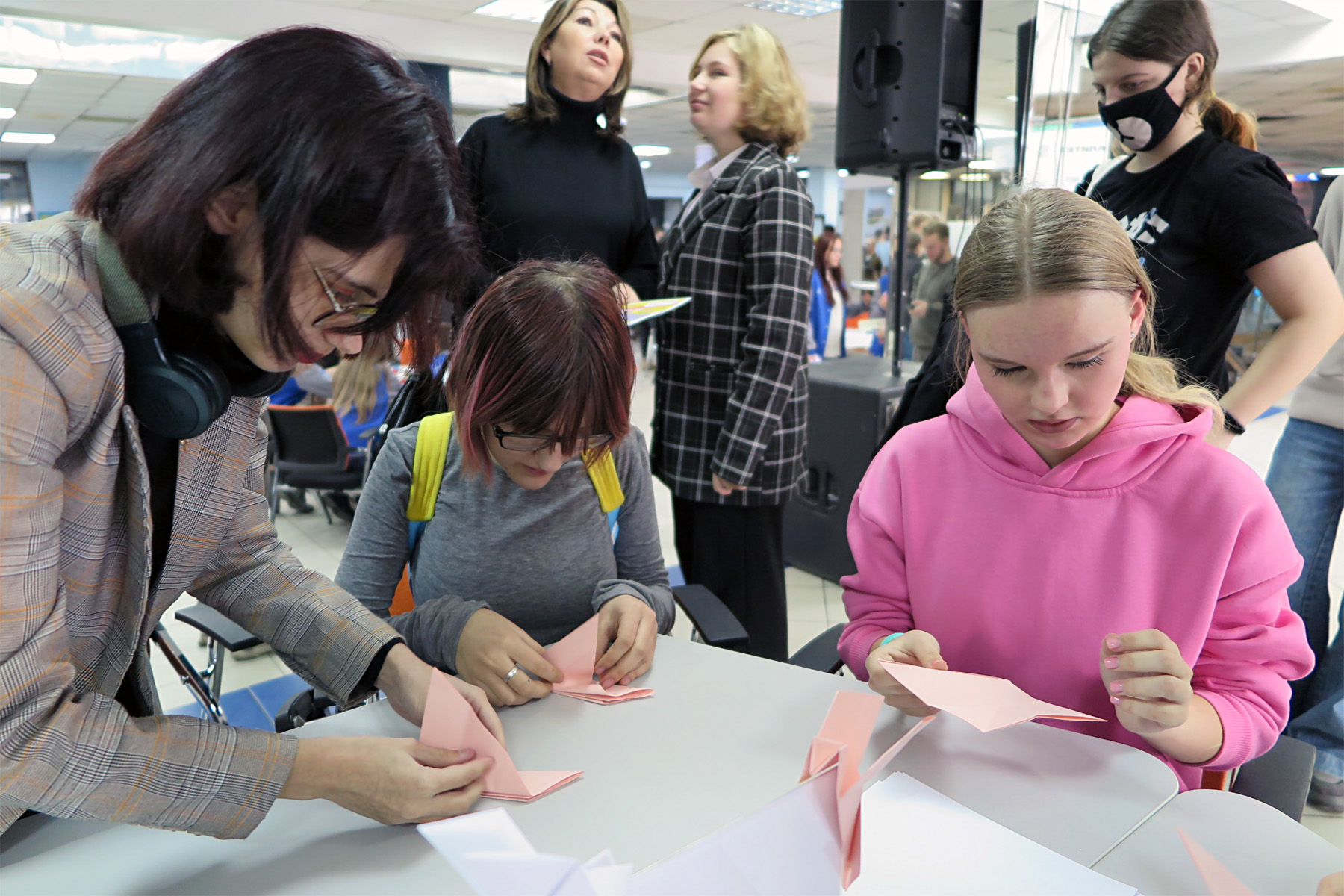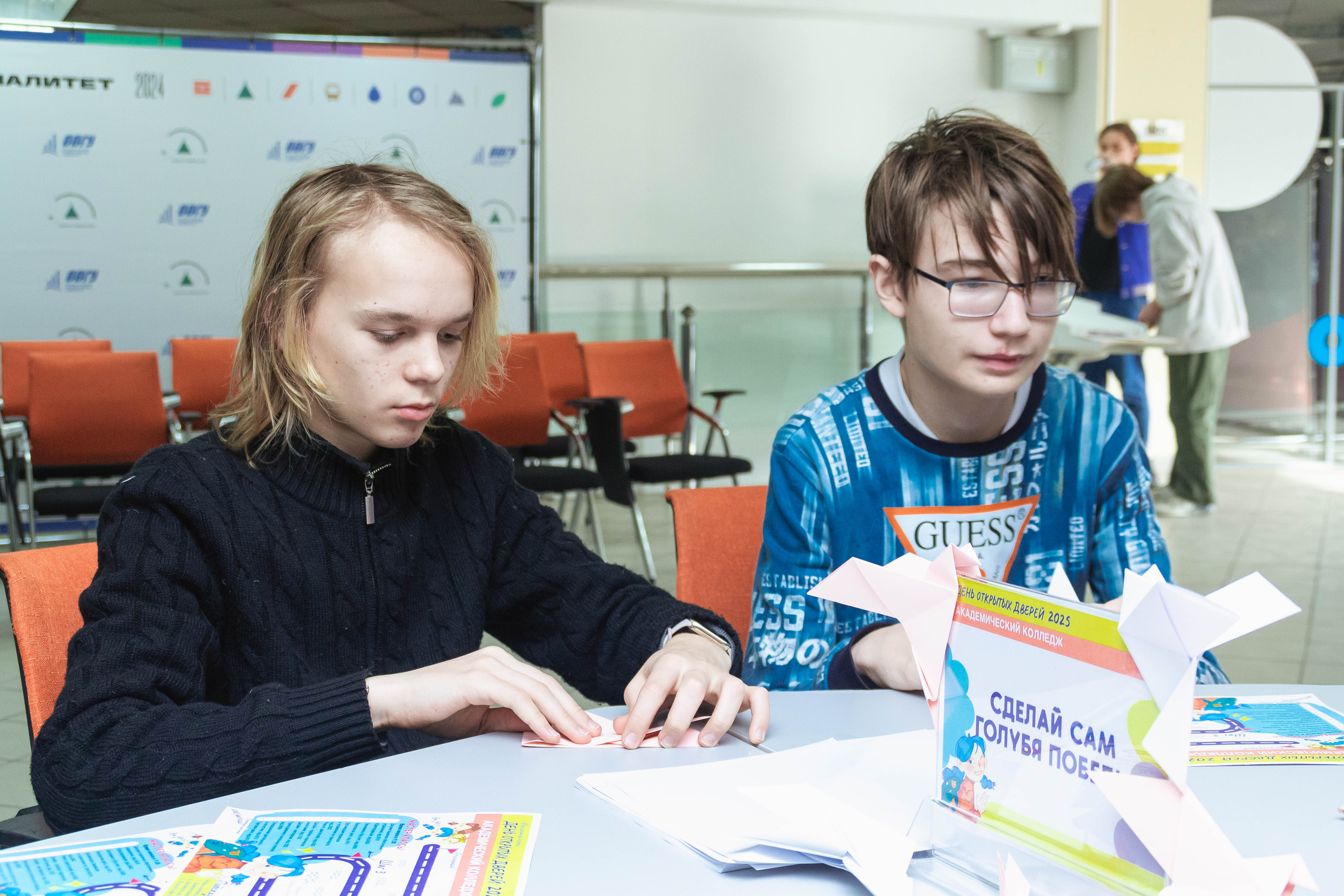 Также для ребят работали патриотические станции. На одной из них будущие абитуриенты смогли сложить голубя Победы, а на другой – принять участие в плетении маскировочной сети для бойцов, которые сейчас находятся в зоне специальной военной операции.