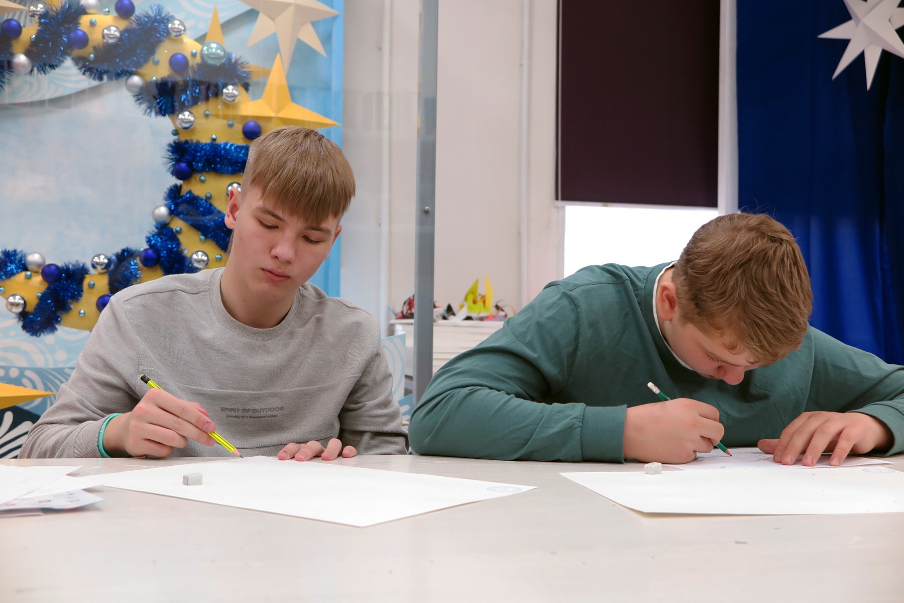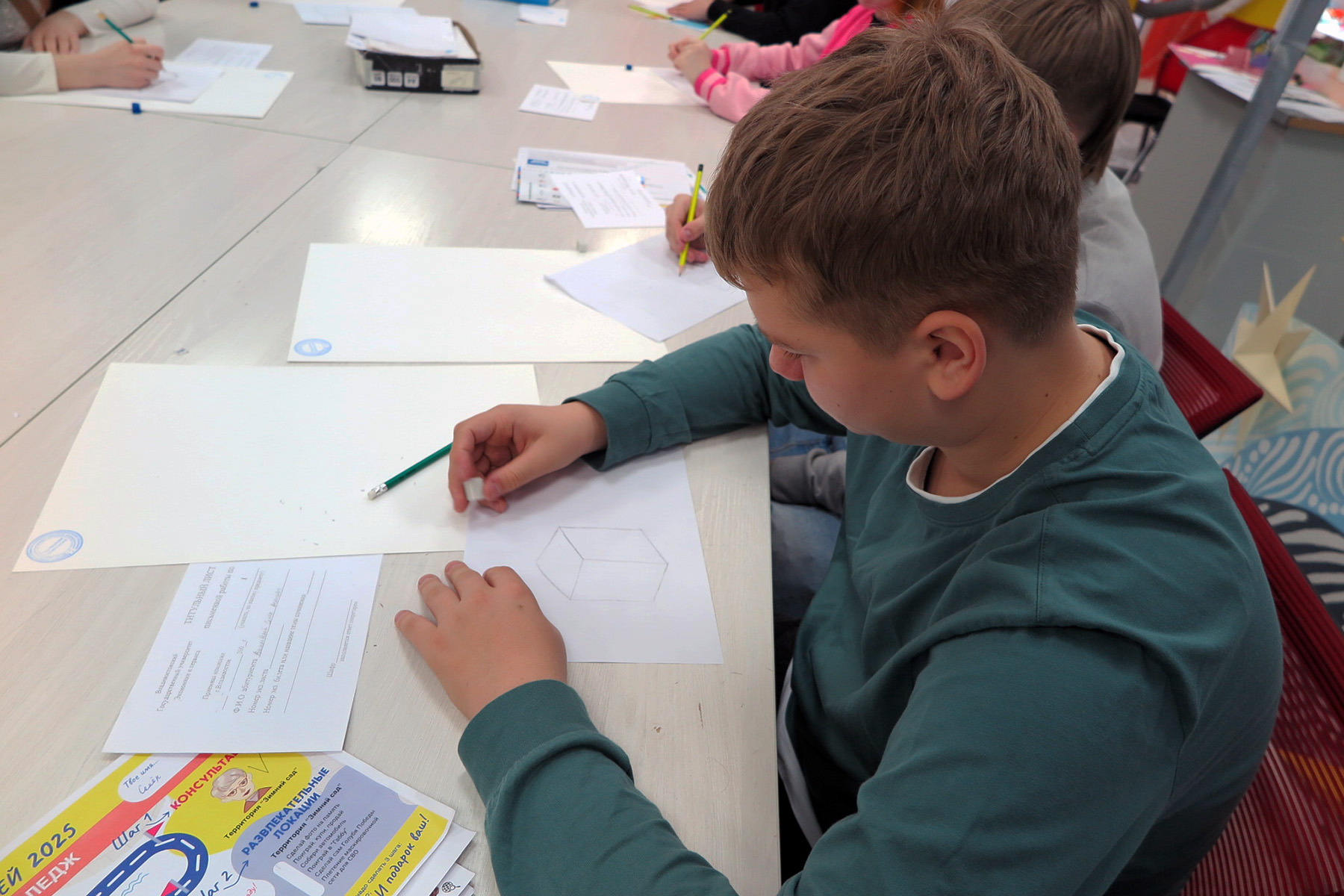 Основная задача – посмотреть, насколько ребята подготовлены в отношении графических навыков, умения простраивать композицию в пространстве, насколько они обладают конструктивным мышлением. Фигуры, которые они простраивают, должны быть со всеми невидимыми линиями и линиями построения.