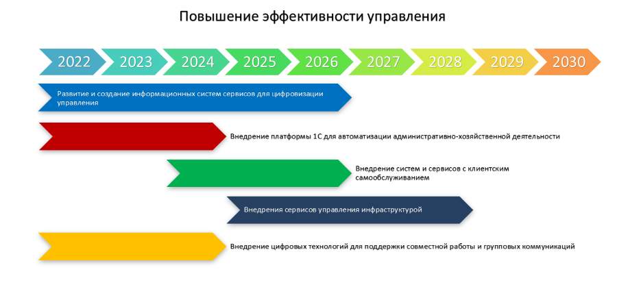 - внедрение информационных систем и сервисов для автоматизации управленческих процессов, в том числе для применения мобильных устройств;