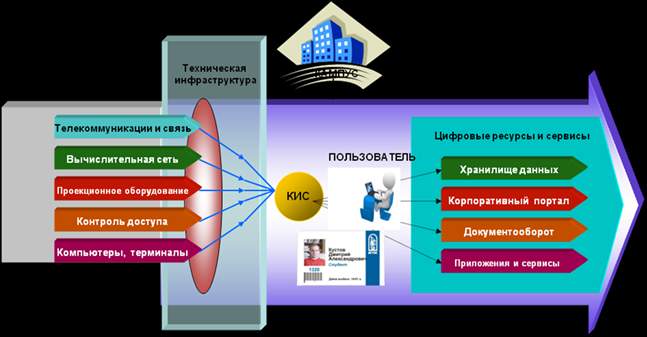 - обеспечение доступа к ресурсам (территория, здания, помещения) при помощи персонифицированных цифровых атрибутов;