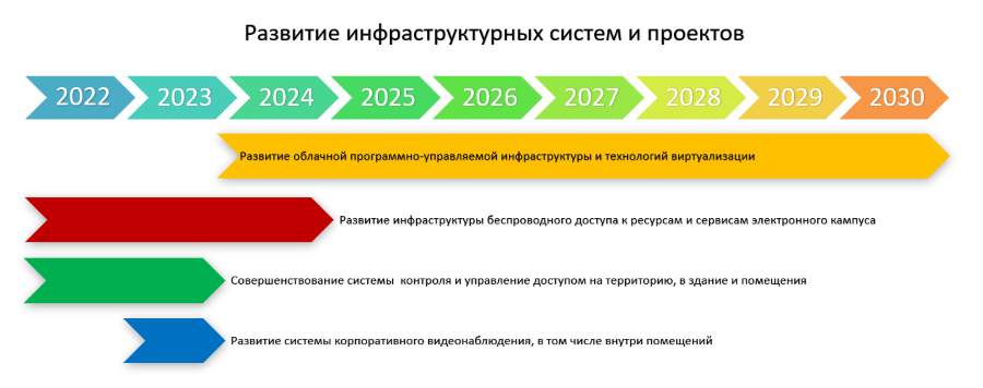 - приведение архитектуры, состава и технических характеристик информационной инфраструктуры в соответствие с потребностями административных и образовательных задач развития университета;