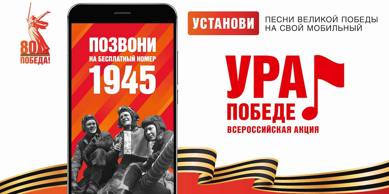 В год 80-летия Победы в Великой Отечественной войне проводится акция «Ура Победе!». Она адресована всем, кому дорога память о наших героях, кто хочет отдать дань уважения ветеранам, поддержать всенародный праздник. Для этого в рамках акции предлагается использовать возможности вашего мобильного телефона. Масштабный мультимедийный проект продлится до 15 мая 2025 года.