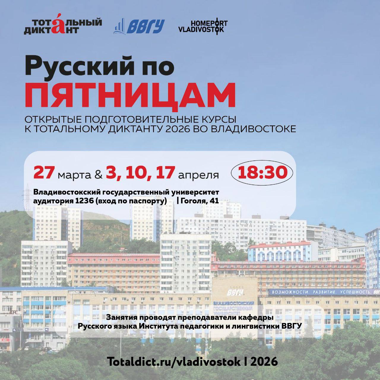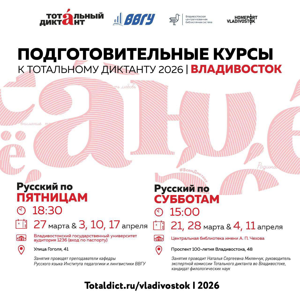 В рамках проведения Всероссийской акции «Тотальный диктант» в ВВГУ в 2026 году состоятся бесплатные занятия по русскому языку для всех желающих.