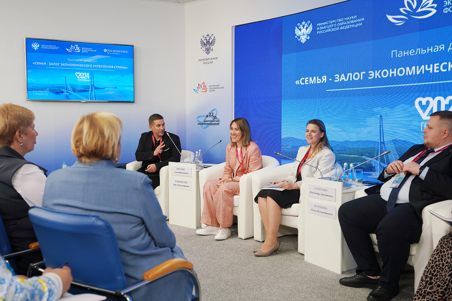 Напомним, что на прошедшем в начале сентября Восточном экономическом форуме обсуждались вопросы, связанные с сохранением традиционных семейных ценностей. В панельной дискуссии «Семья – залог экономического укрепления страны» участвовали представители федеральных и региональных органов власти, молодые студенческих семьи ДФО, преподаватели вузов. Участники от нашего университета – проректор по молодежной политике Юлия Чебова и доцент кафедры туризма и гостинично-ресторанного бизнеса Галина Петрова – отметили, что дискуссия была посвящена очень важной, ключевой для нашего общества теме: формированию комфортных условий для создания семей и воспитания детей.