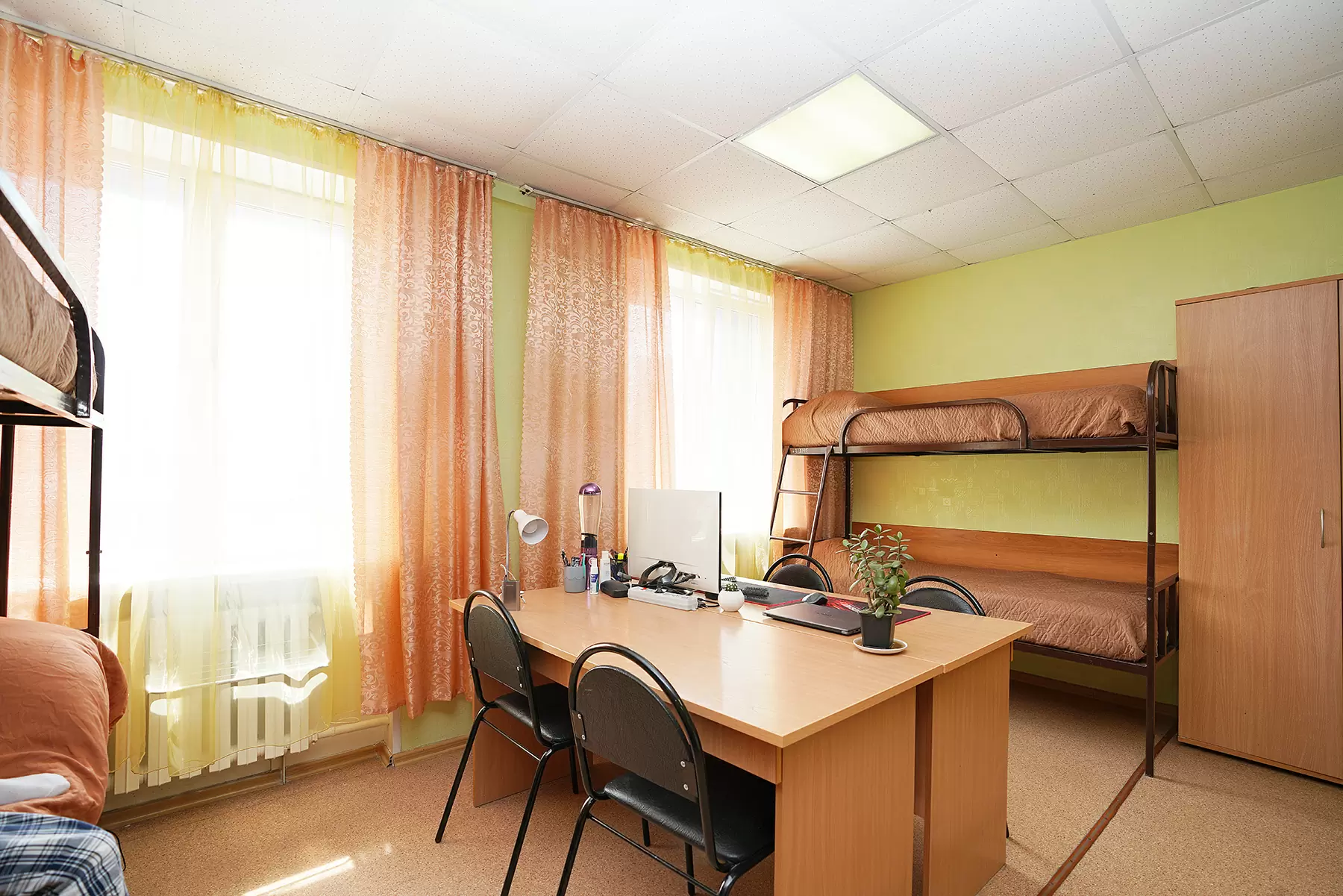 - «уголок студента» (кровать, шкаф для одежды, стол письменный) на каждого проживающего;