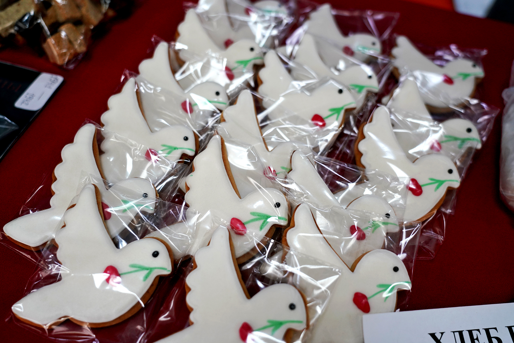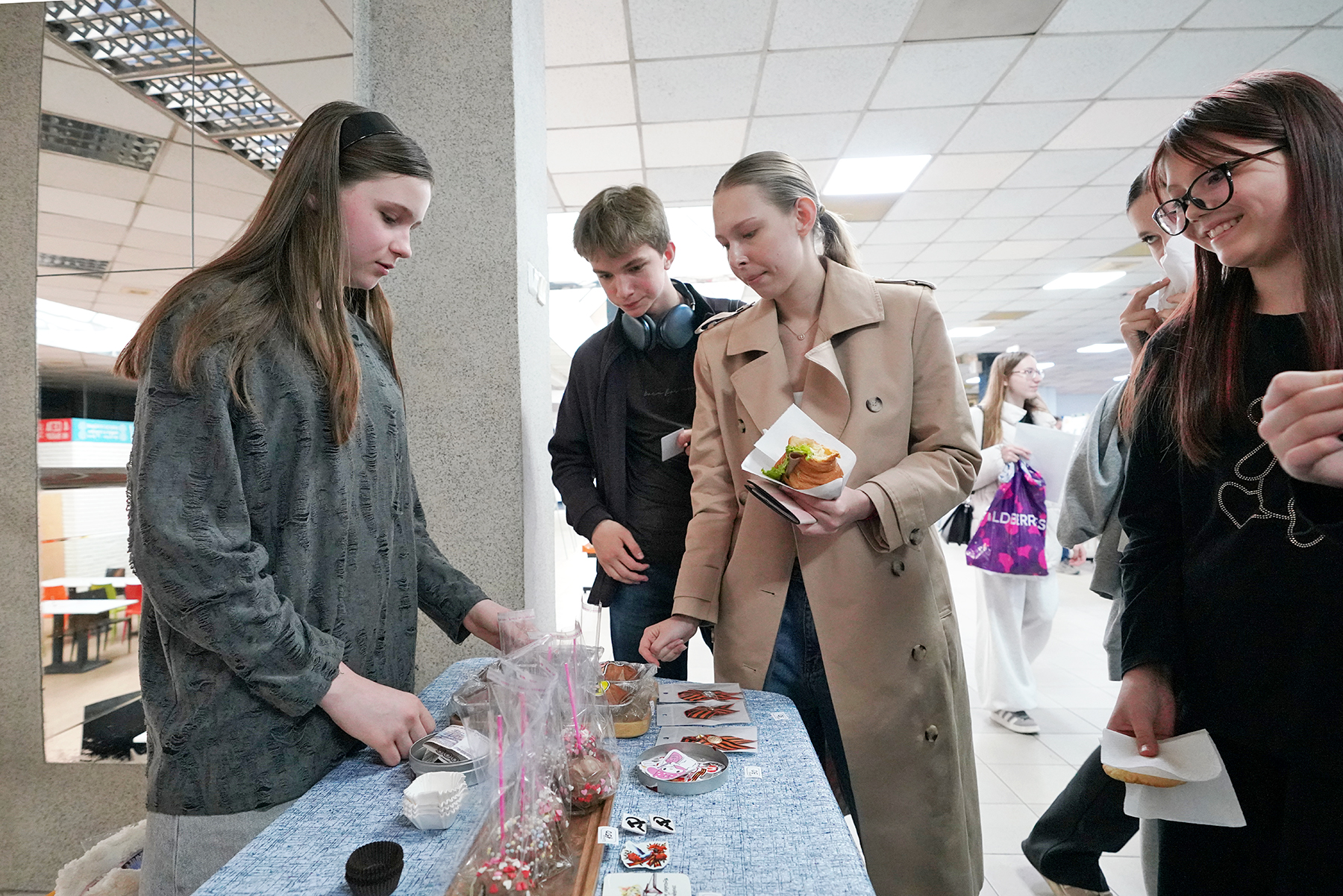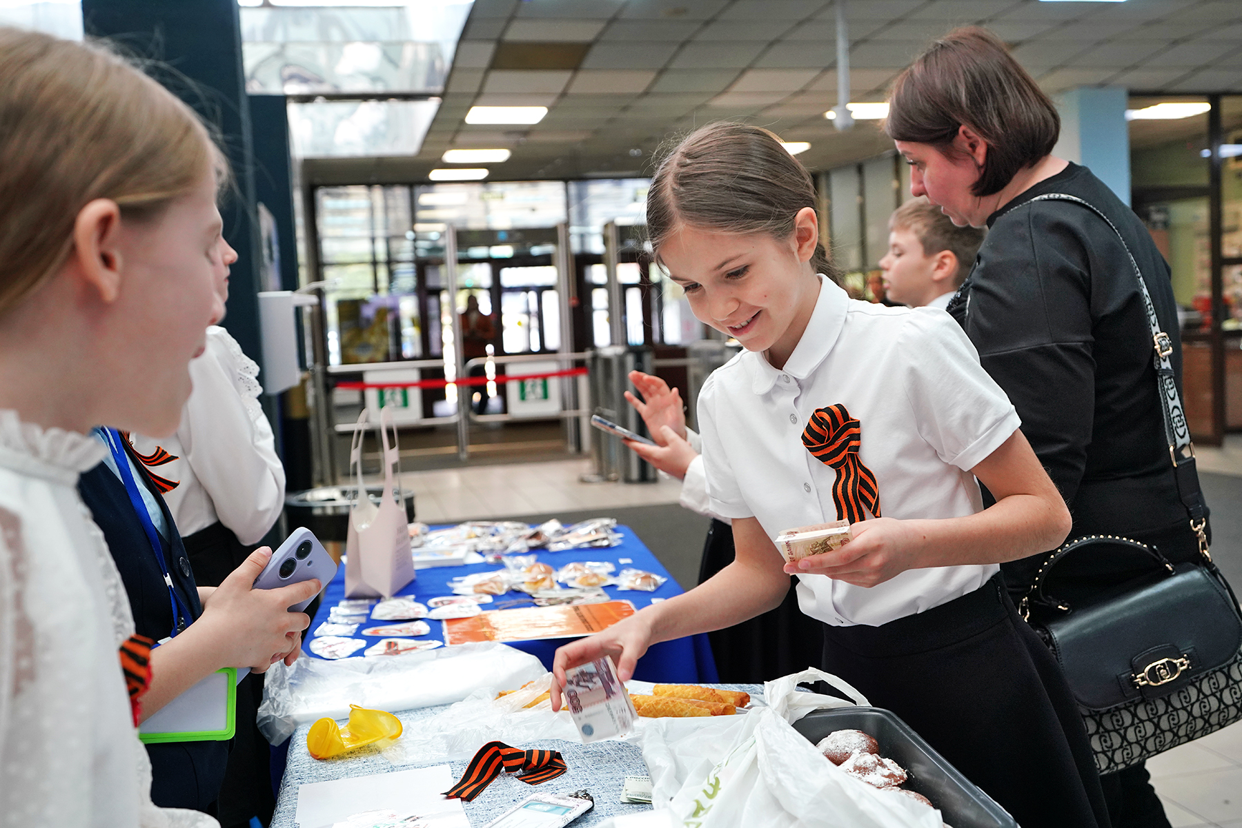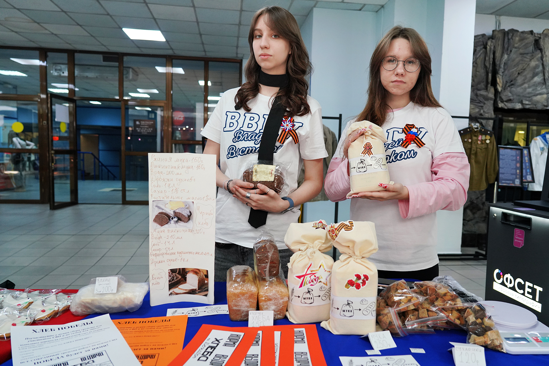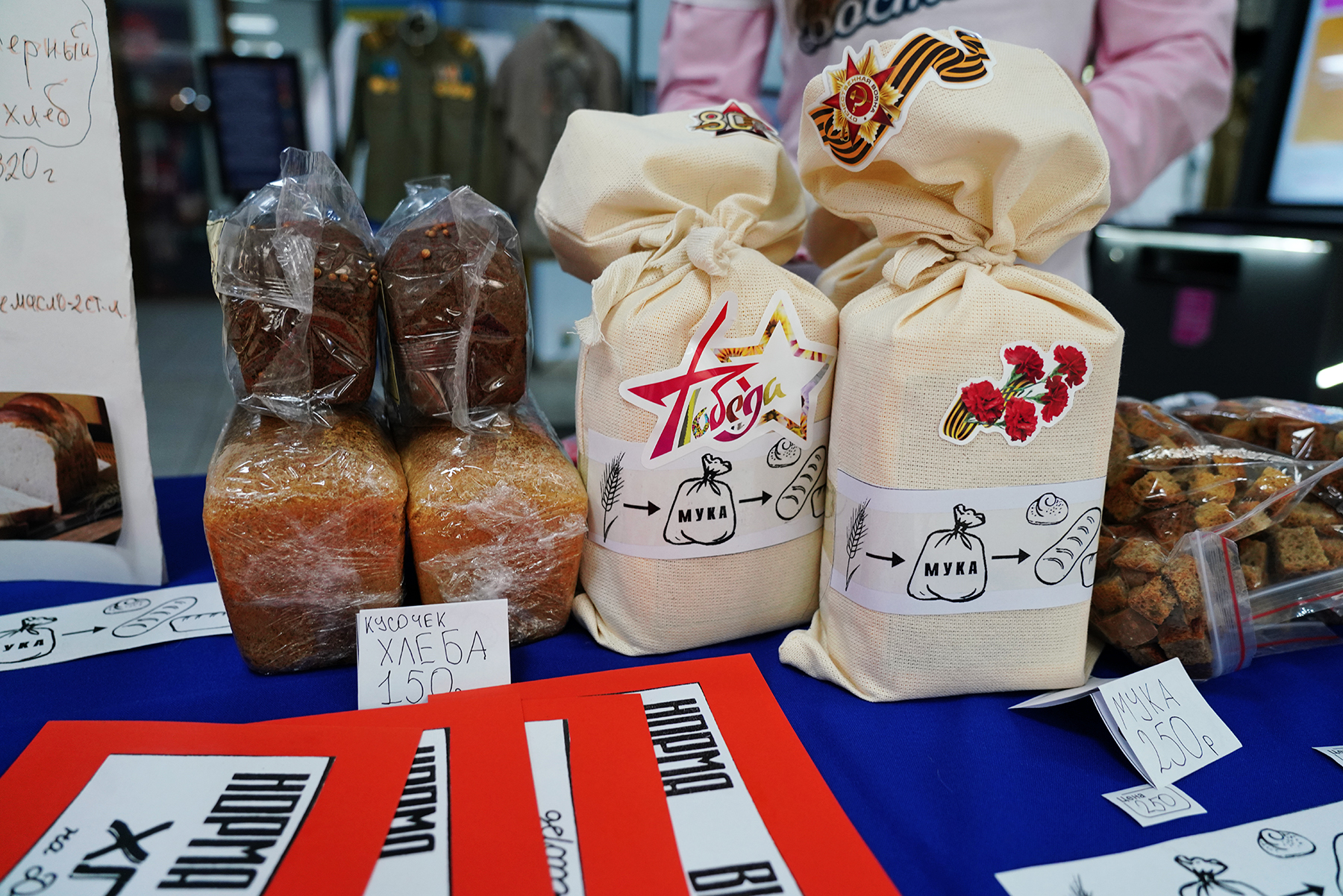 За символическую плату на ярмарке можно было приобрести изделия ручной работы: вышивку, украшения, выпечку, авторские поделки в тематике Дня Победы. Все вырученные средства поступают на счёт помощи ветеранам, семьям и участникам СВО.