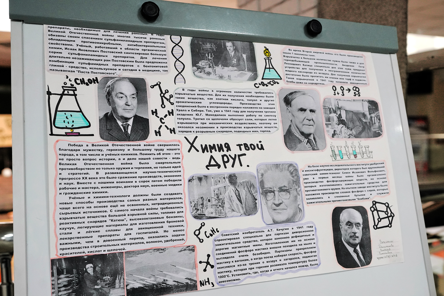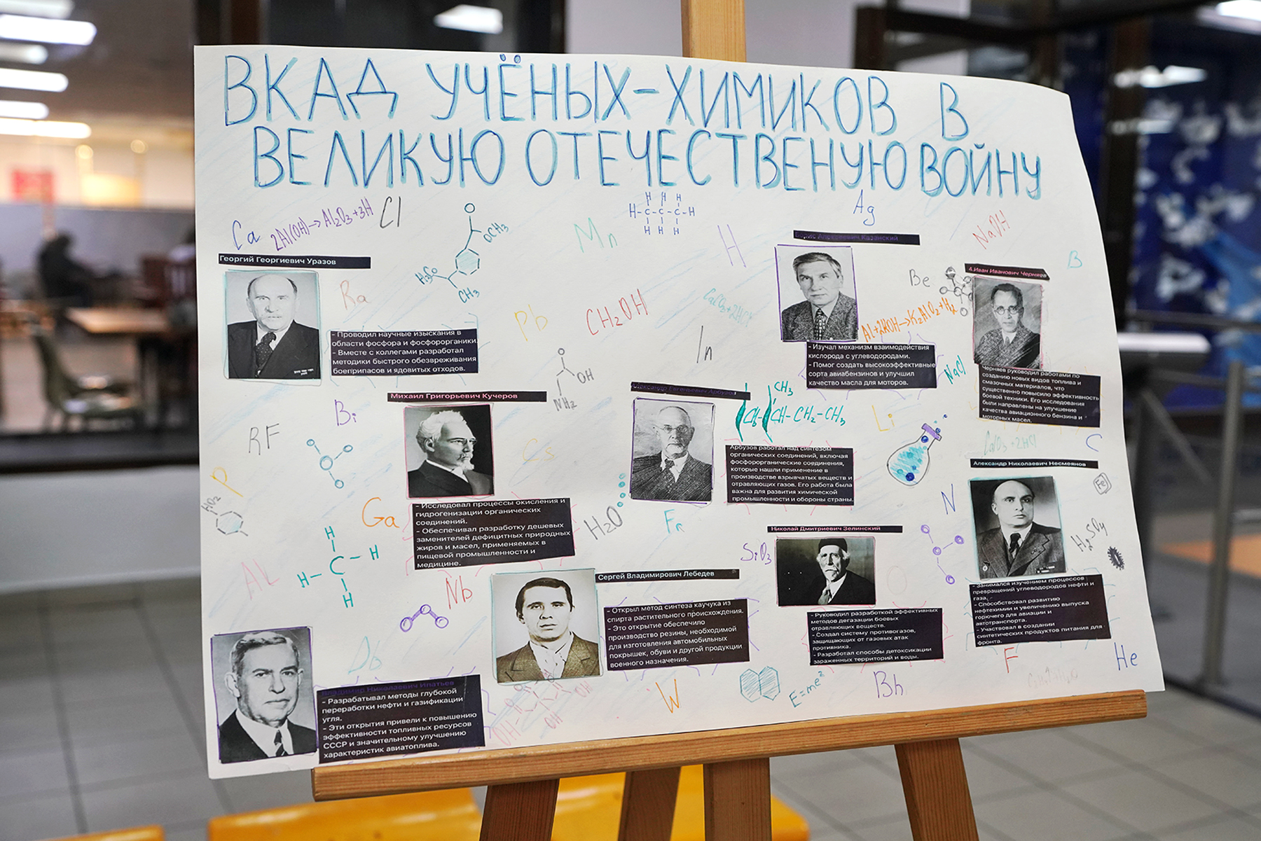 На событии студенты, сотрудники и гости вуза могли ознакомиться с историей великой Победы. В Зимнем саду разместили плакаты о событиях Великой Отечественной войны, героях-военнослужащих, учёных, деятелях культуры и искусства. Отдельной галереей выставили атрибутику победоносной советской армии: точные копии военной формы, боевых наград и амуниции.