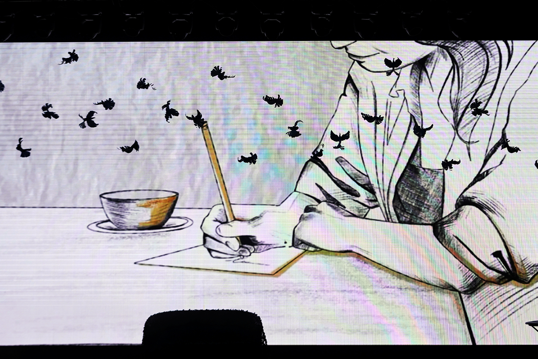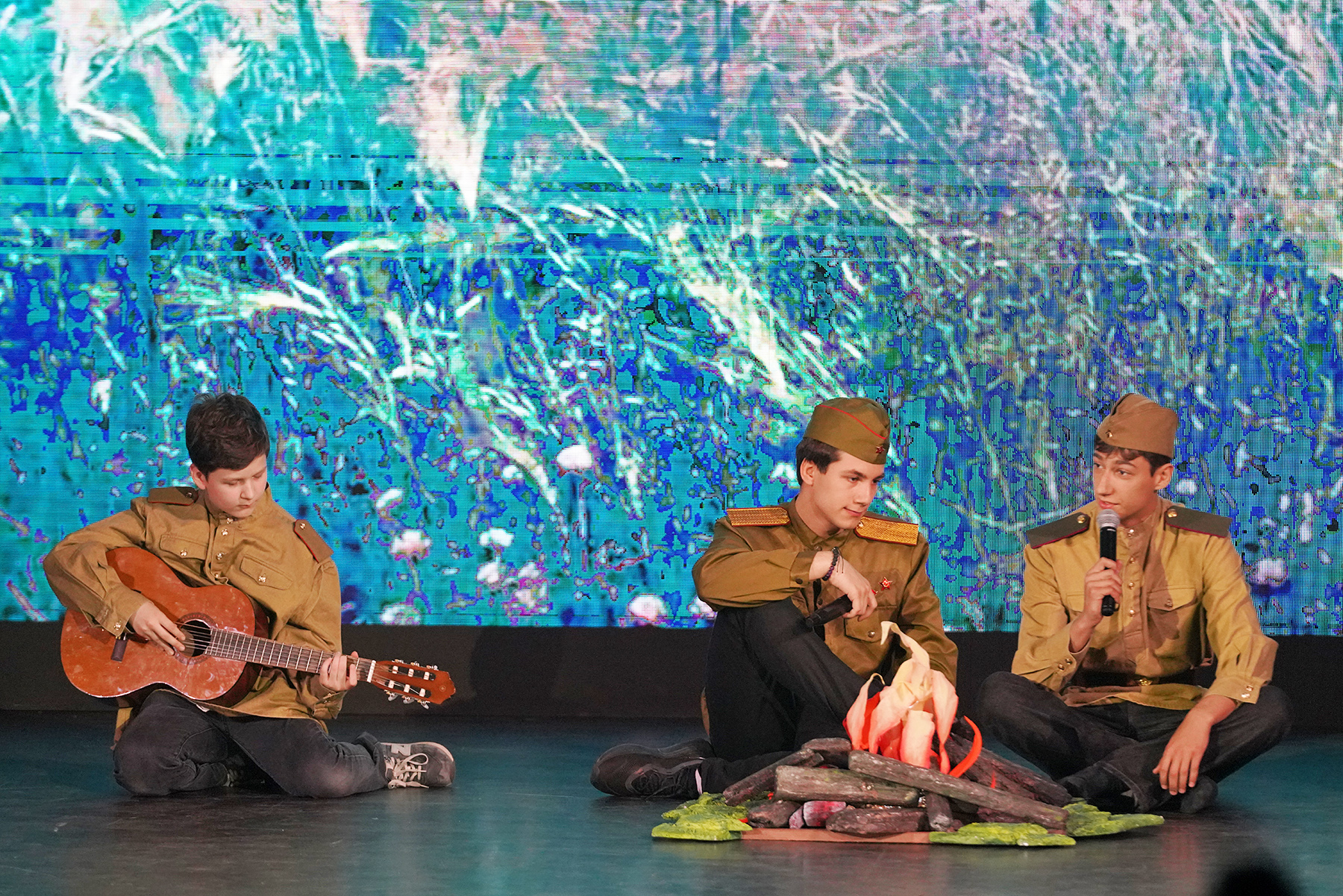 Гости услышали стихотворения и песни о Великой Отечественной войне: балладу о чёрством куске, «Смуглянку», произведение Булата Окуджавы «До свидания, мальчики». Вся сюжетная линия спектакля основана на переживаниях героев – солдатских письмах, размышлениях и разговорах перед боем.