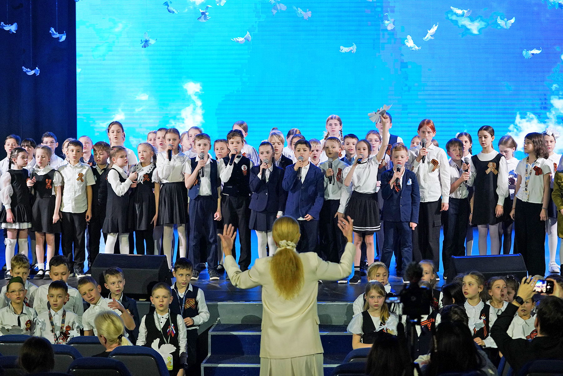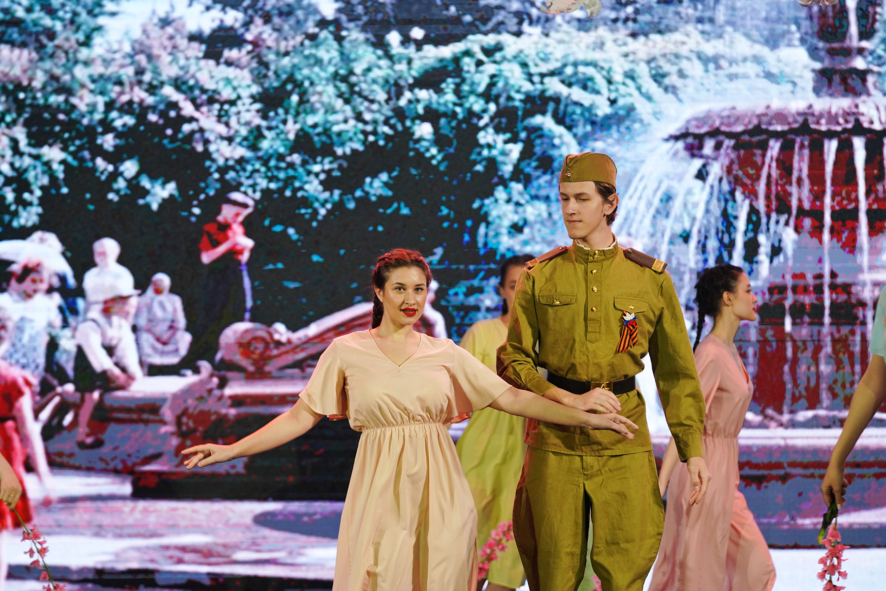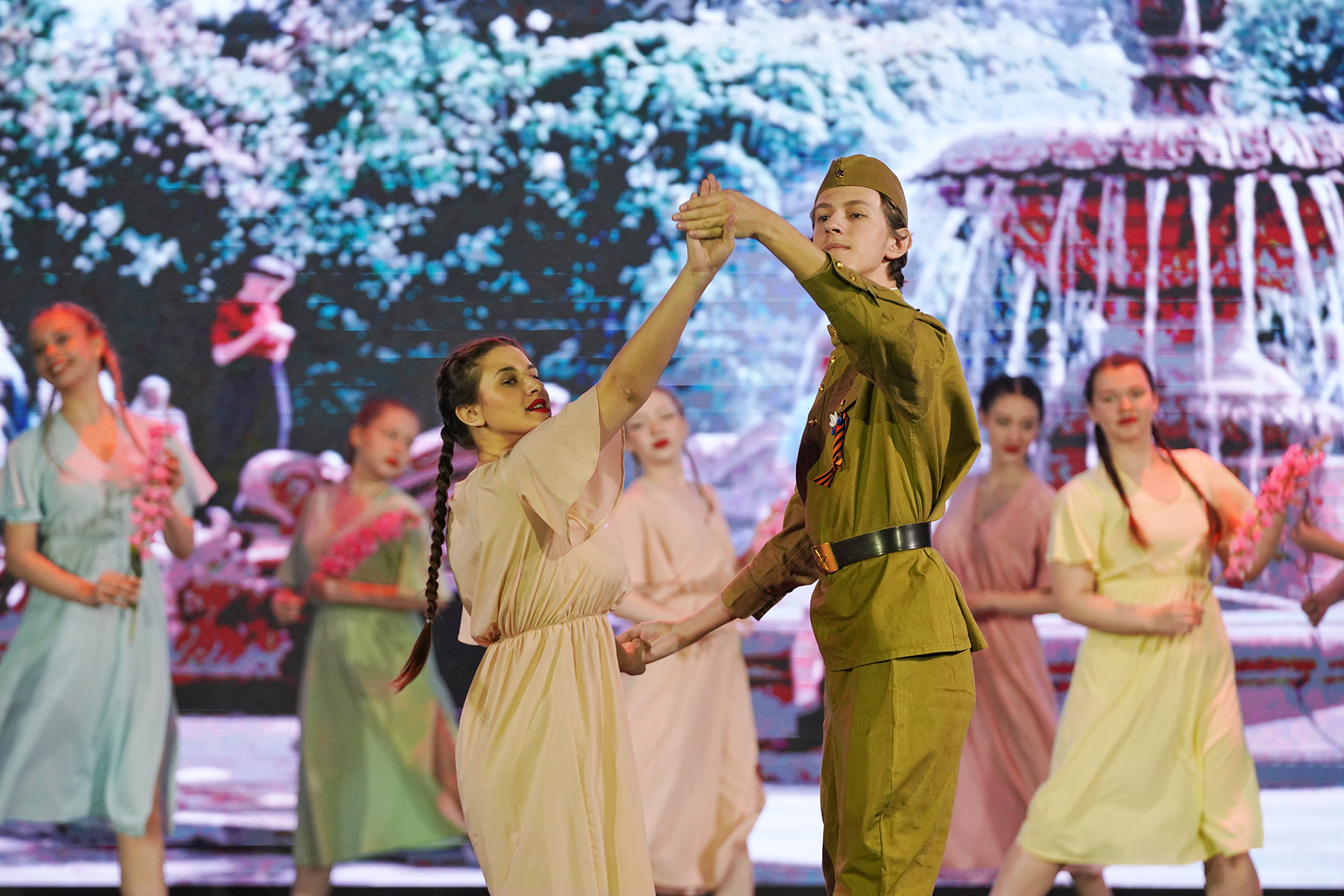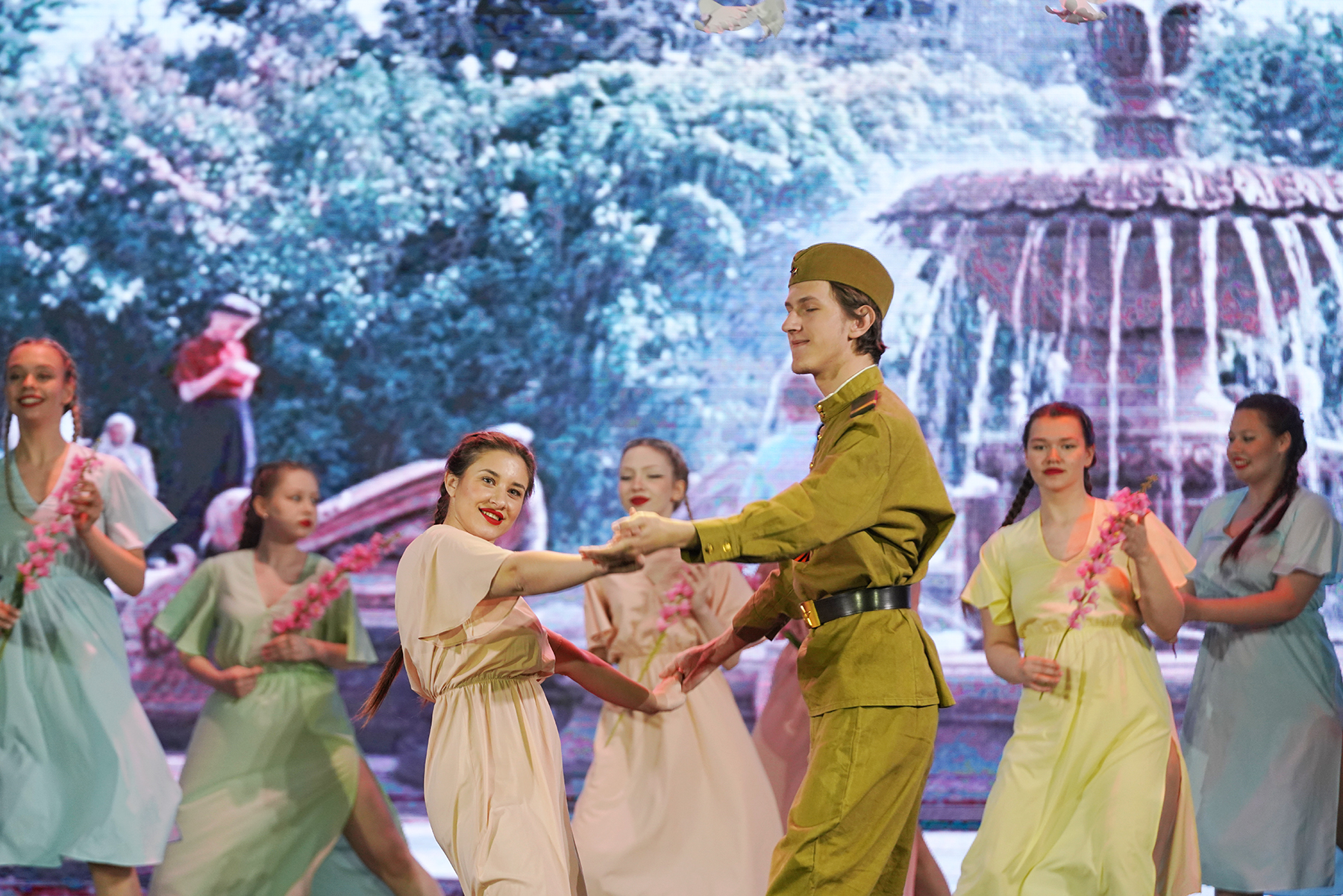 Так, хор лицеистов исполнил песню «Белые голуби» группы «Волшебники двора». В масштабном музыкальном флешмобе приняли участие более 100 учащихся. Продолжили концерт танцевальные номера студии современной хореографии «Элемент Икс» в сопровождении вокального коллектива «Престиж» ВВГУ. Студенческие пары закружились под песни «Майский вальс» и «Синий платочек».