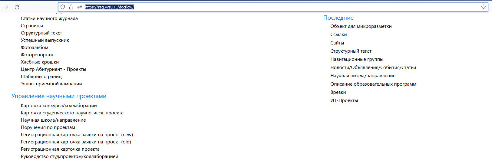В системе управления электронным документооборотом (СУЭД) модуль для управления научными проектами может включать различные типы документов, такие как: