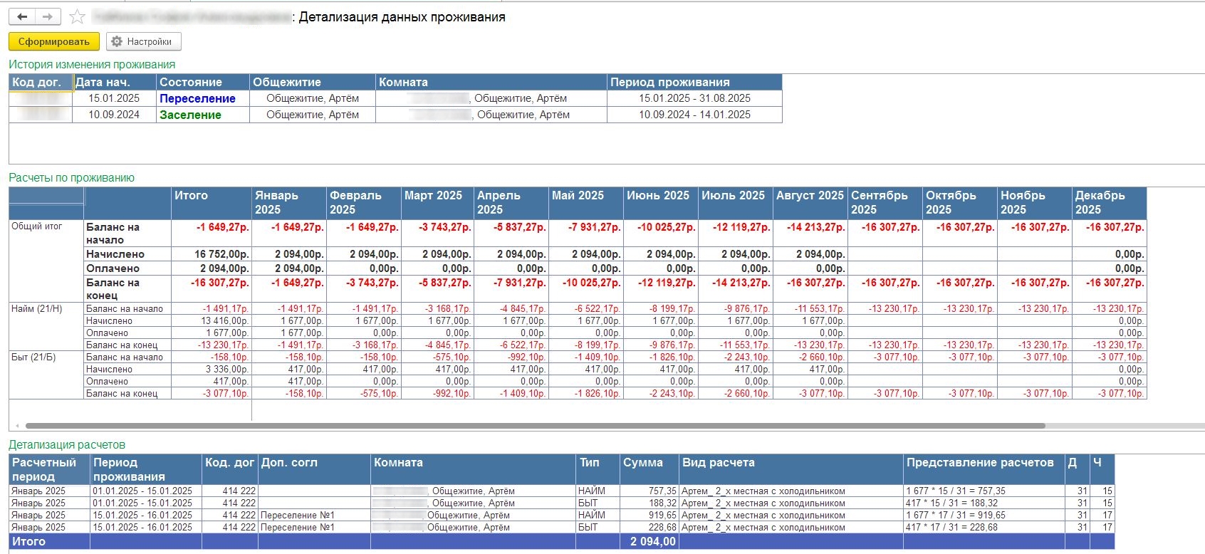 - Получение актуальных финансовых отчетов по оплате за проживание, поиск задолжников;