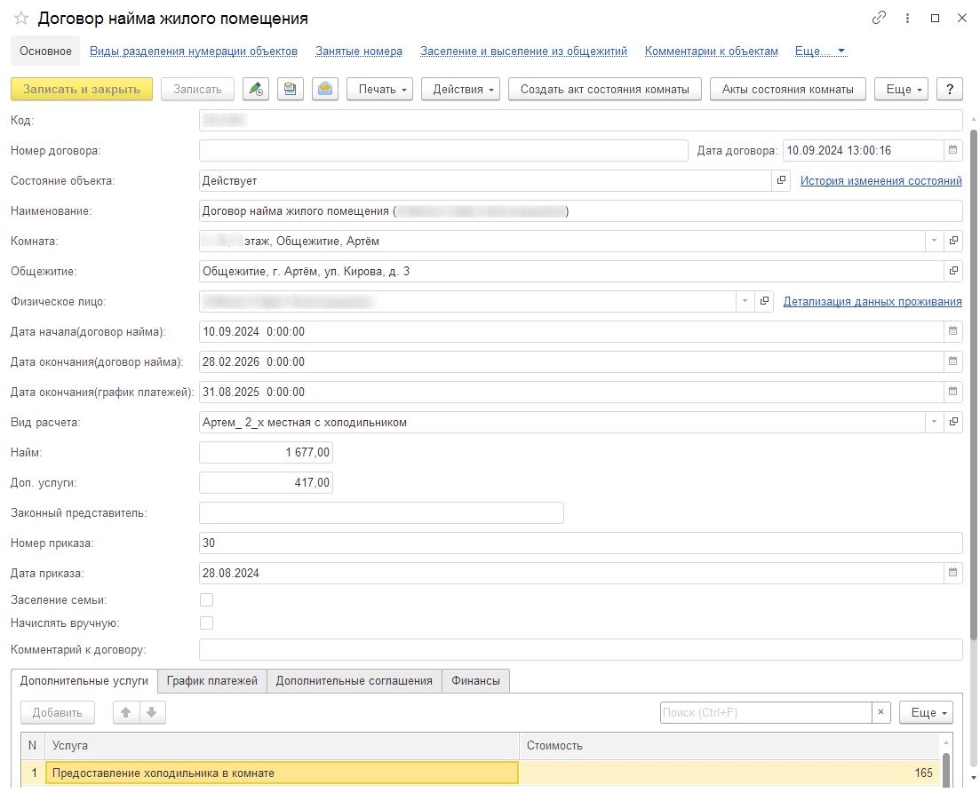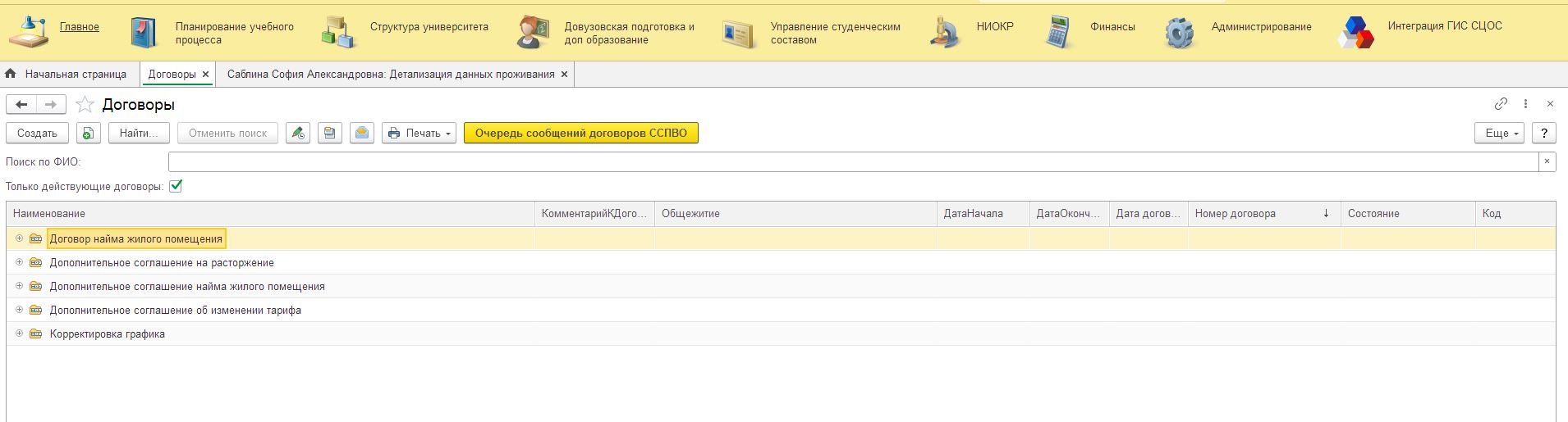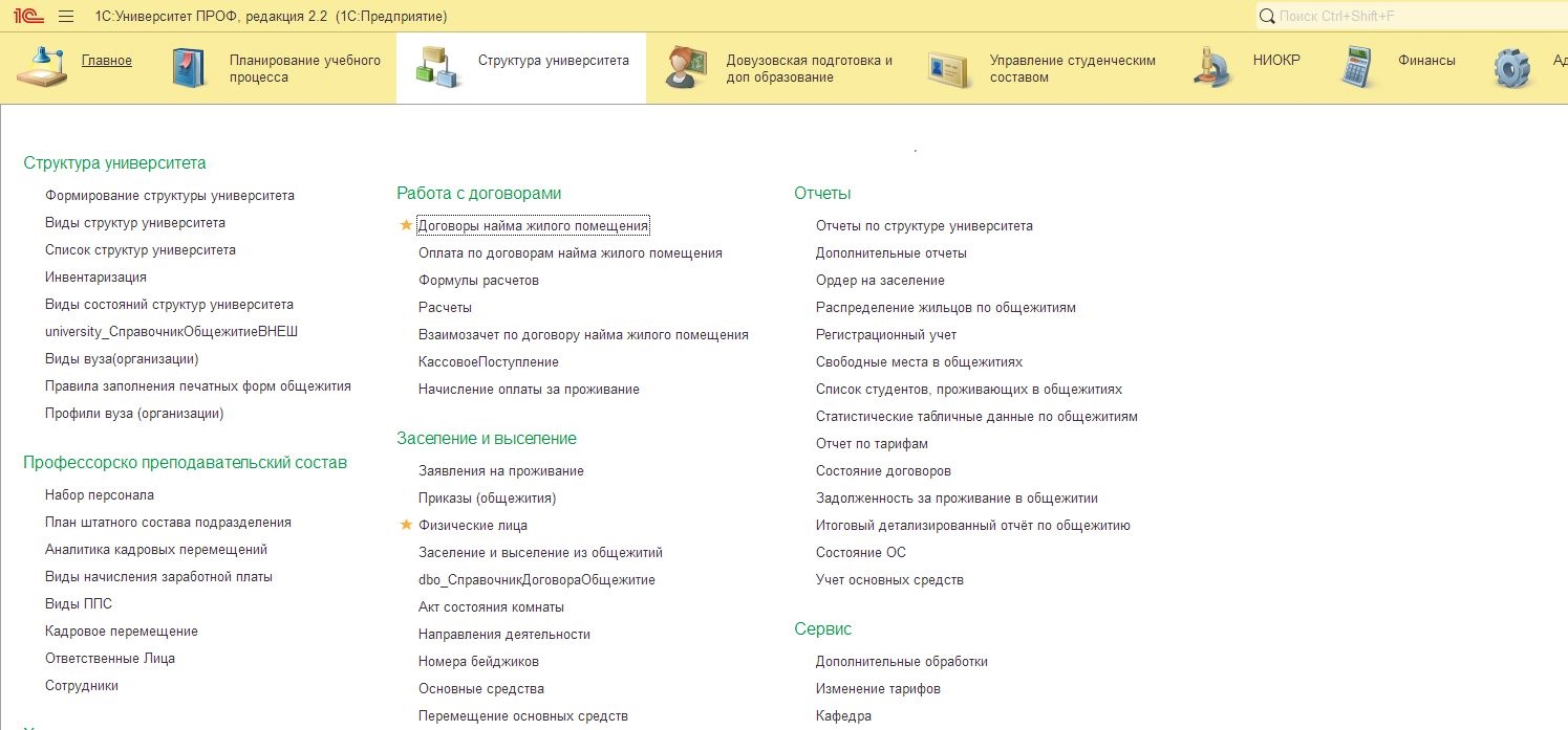 Деловые процедуры, которые автоматизированы в системе:- Процесс поселения – подача заявления, формирование договора, формирование проекта приказа, подписание приказа, распределение по комнатам;