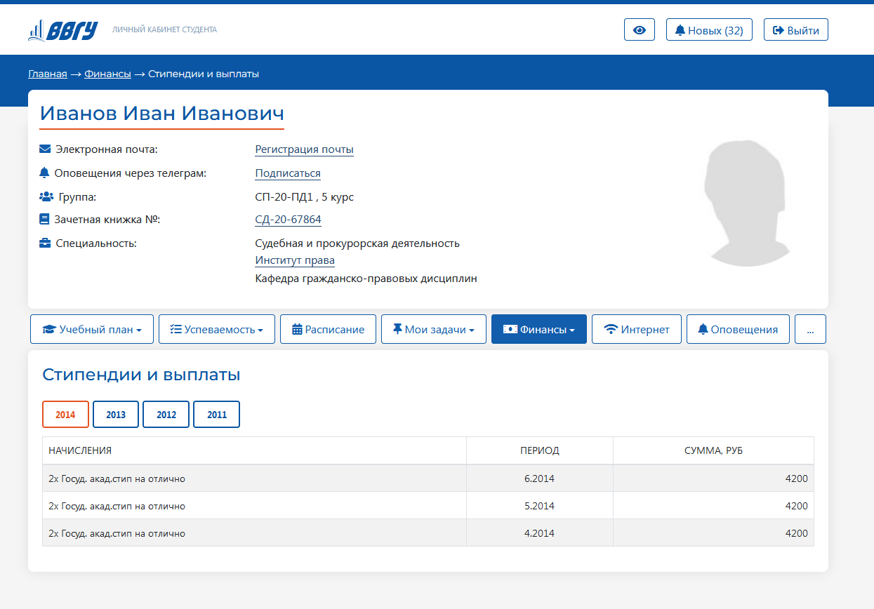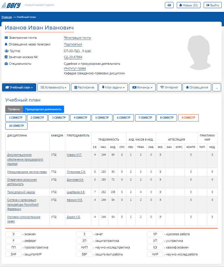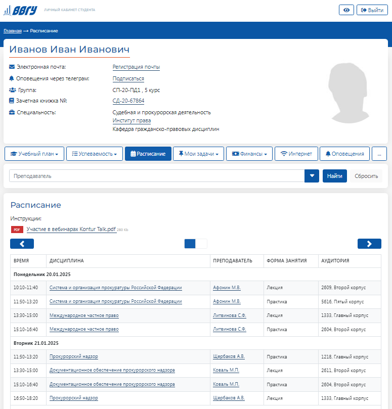 В личном кабинете пользователям (студентам) предоставляется возможность: