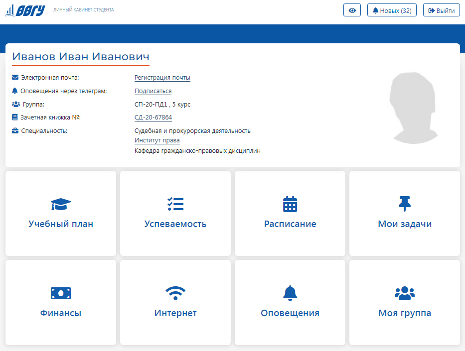 Для получения доступа к личному кабинету студенту необходимо зарегистрироваться на портале ВВГУ.В личном кабинете студента доступны: