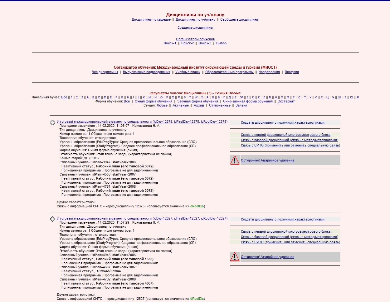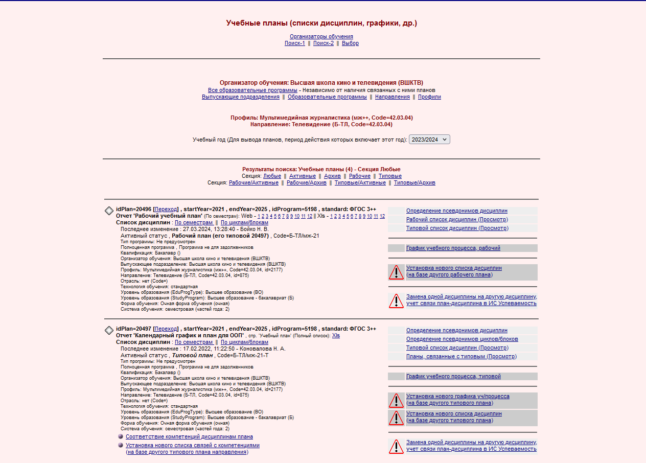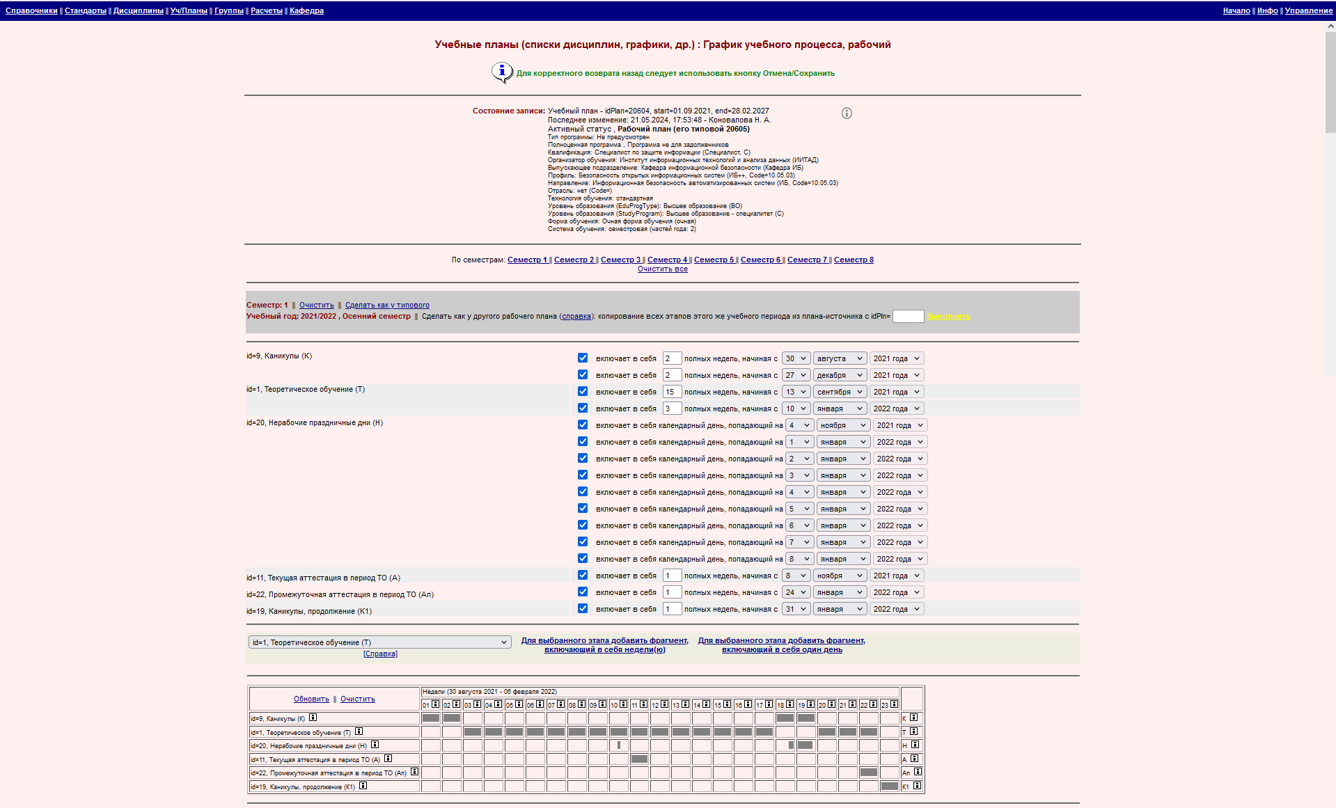 - создание, модификация и утверждение рабочих и типовых учебных планов как набора дисциплин;