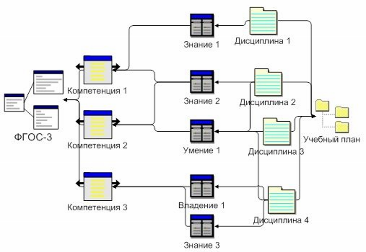 - определение содержания учебного процесса (связей дисциплин и модулей со знаниями, умениями, владениями);