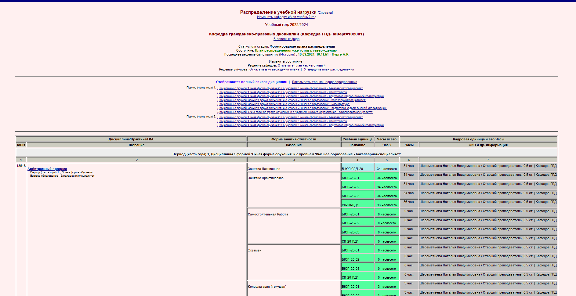 - отчетность преподавателя и кафедры по учебной нагрузке;