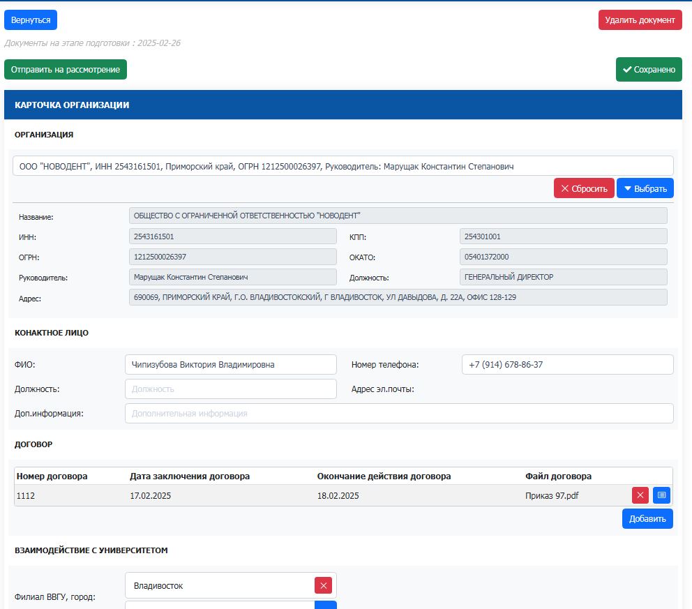 - внесения описания организаций, с которыми у университета есть действующий договор на реализацию практико- интегрированного обучения;