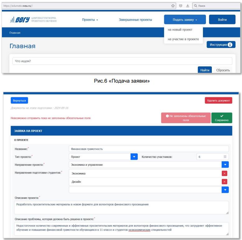 - формирования заявок на проекты;