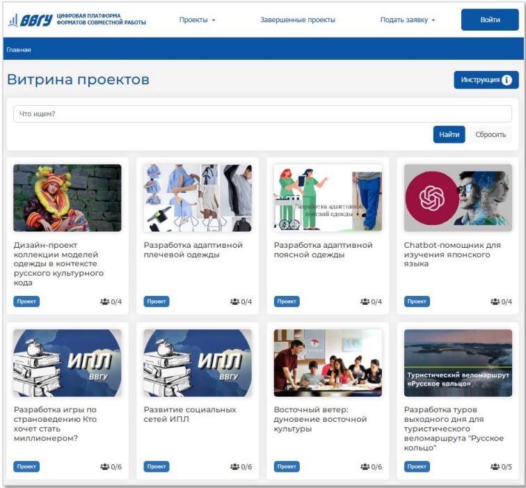 1. Проектного обучения.Платформа создана с целью информирования и вовлечение в проекты студентов и преподавателей, а также для интеграции проектной деятельности в образовательный процесс.