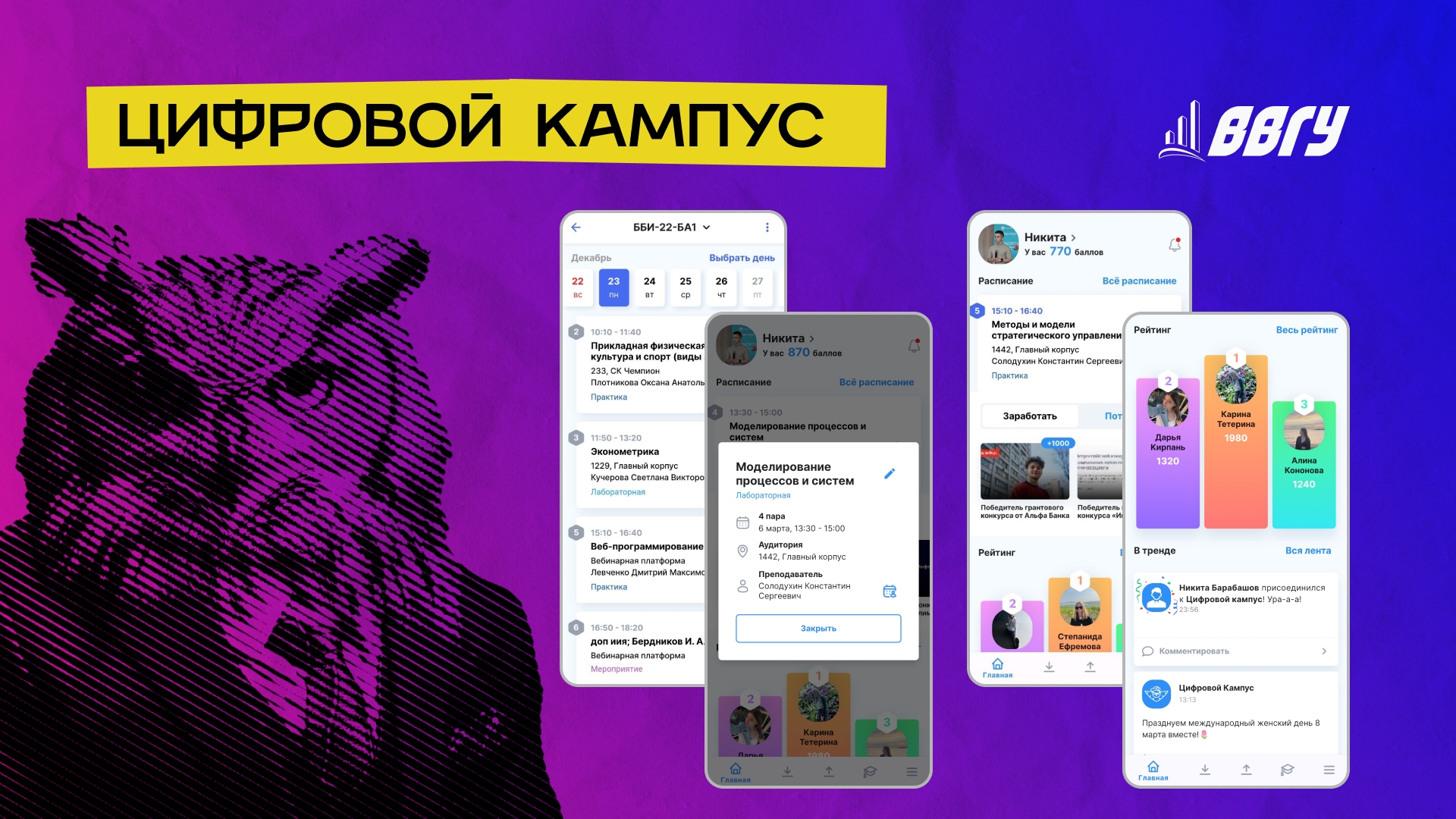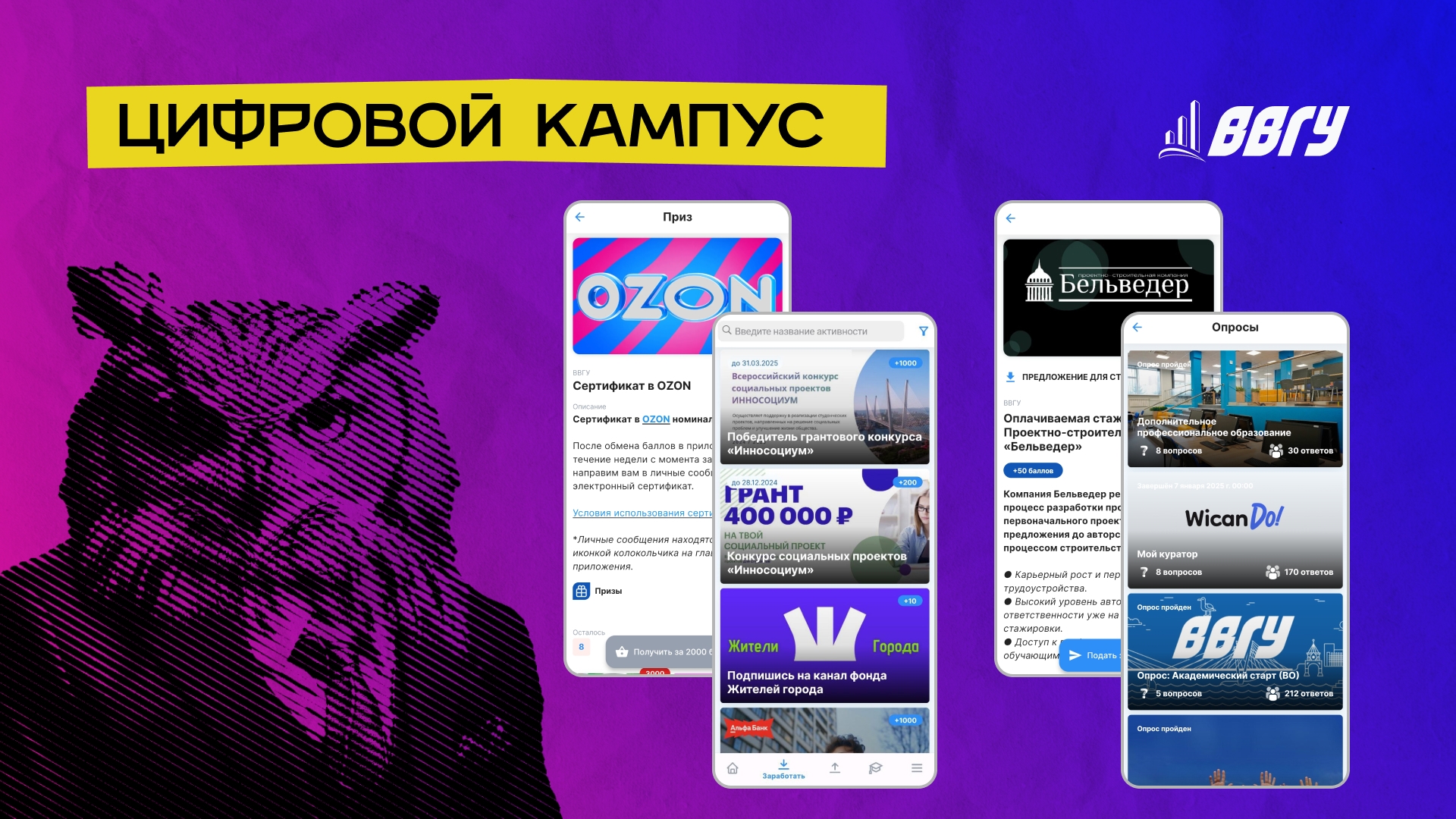 «Цифровой кампус» — это мобильное приложение, в котором собраны все самые интересные новости и мероприятия карьерной, научной, образовательной и спортивной направленности. За участие в активностях и мероприятиях студенты получают баллы, их можно обналичить на разнообразные призы, сертификаты и предложения от партнёров, что делает обучение и развитие более увлекательным.