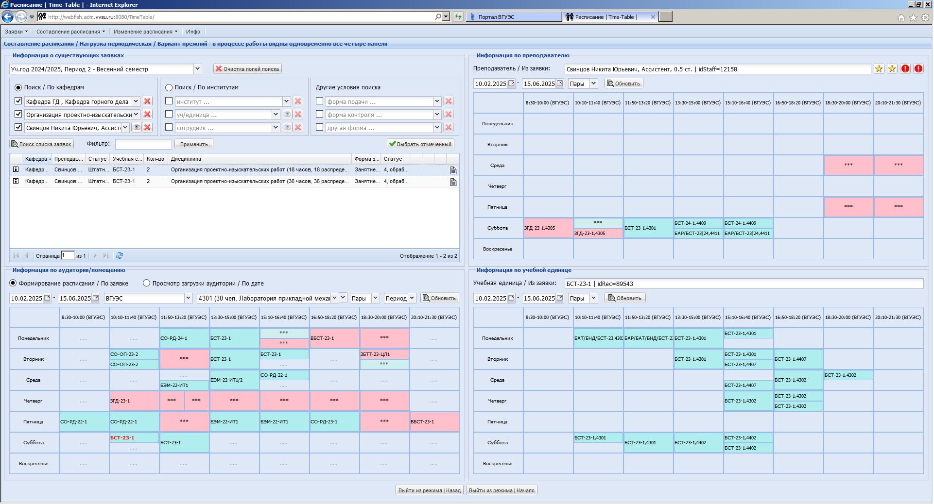 - формировать расписание занятий по периодической и непериодической нагрузке;