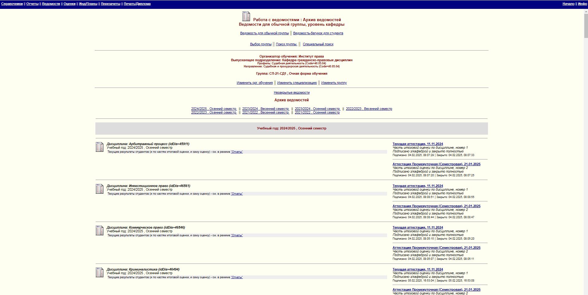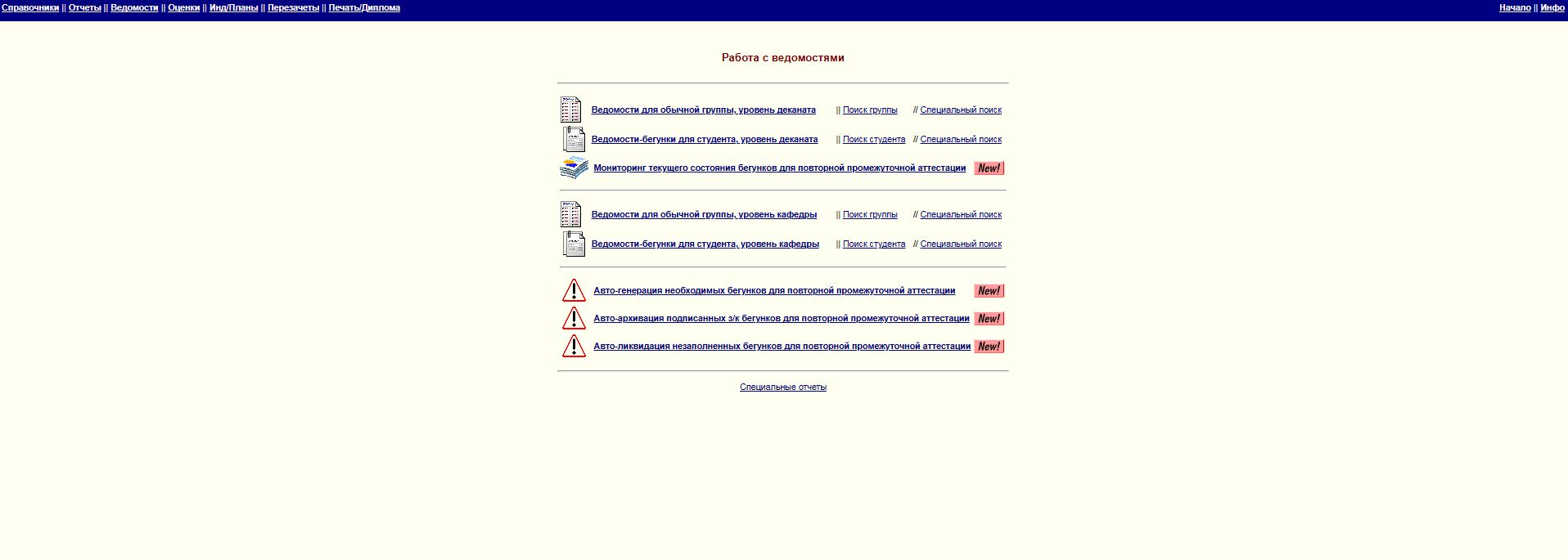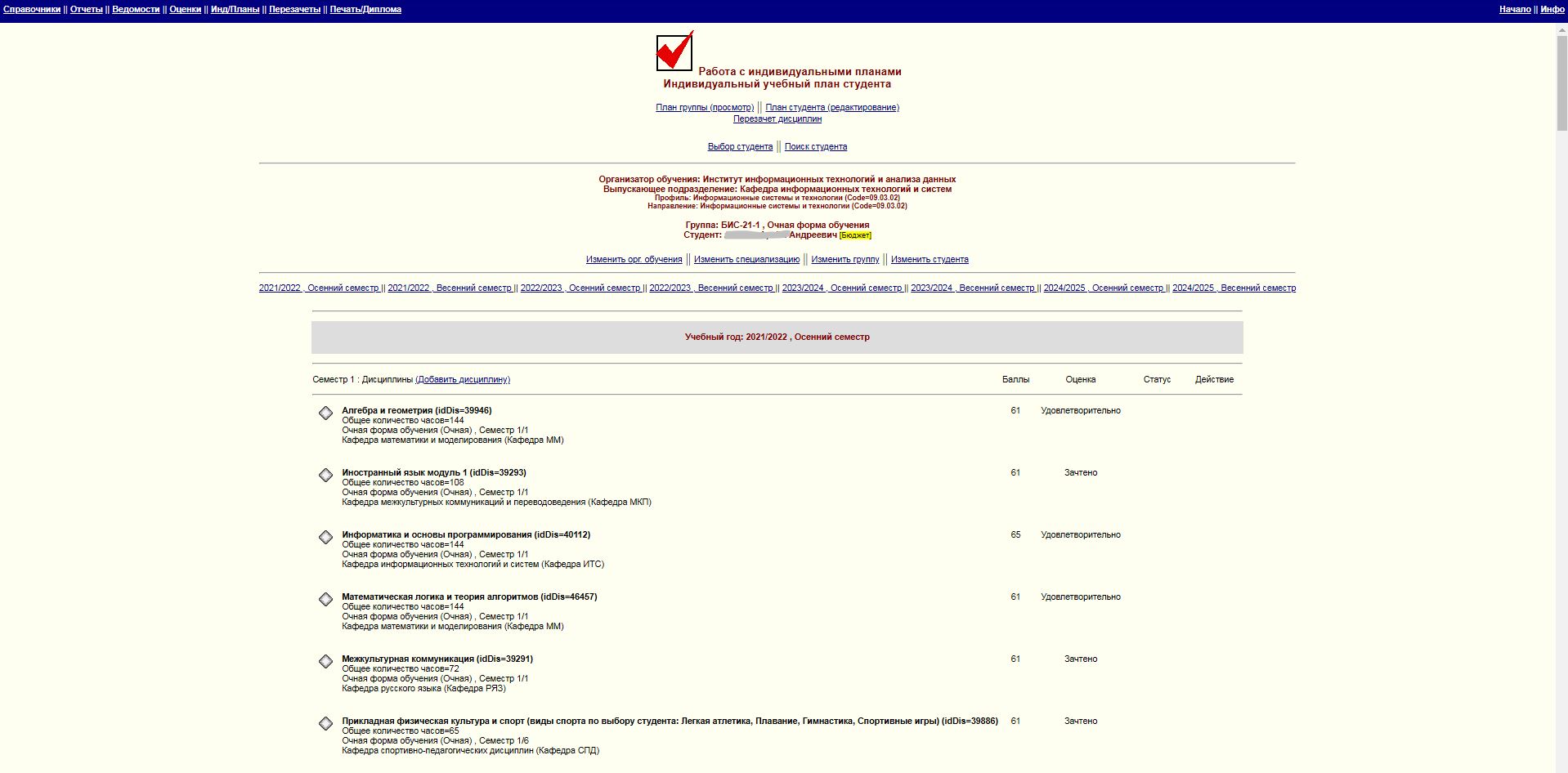 Система предназначена для реализации рейтинговой системы контроля знаний и создания индивидуальной траектории обучения студентов, а также для анализа и контроля успеваемости, печати приложения к диплому.Система позволяет: