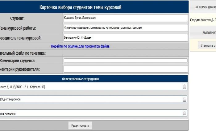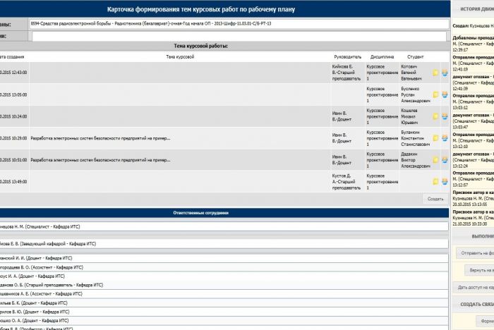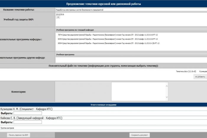 - Создавать тематики для курсовых и дипломных работ и согласовывать их с зав. кафедрами