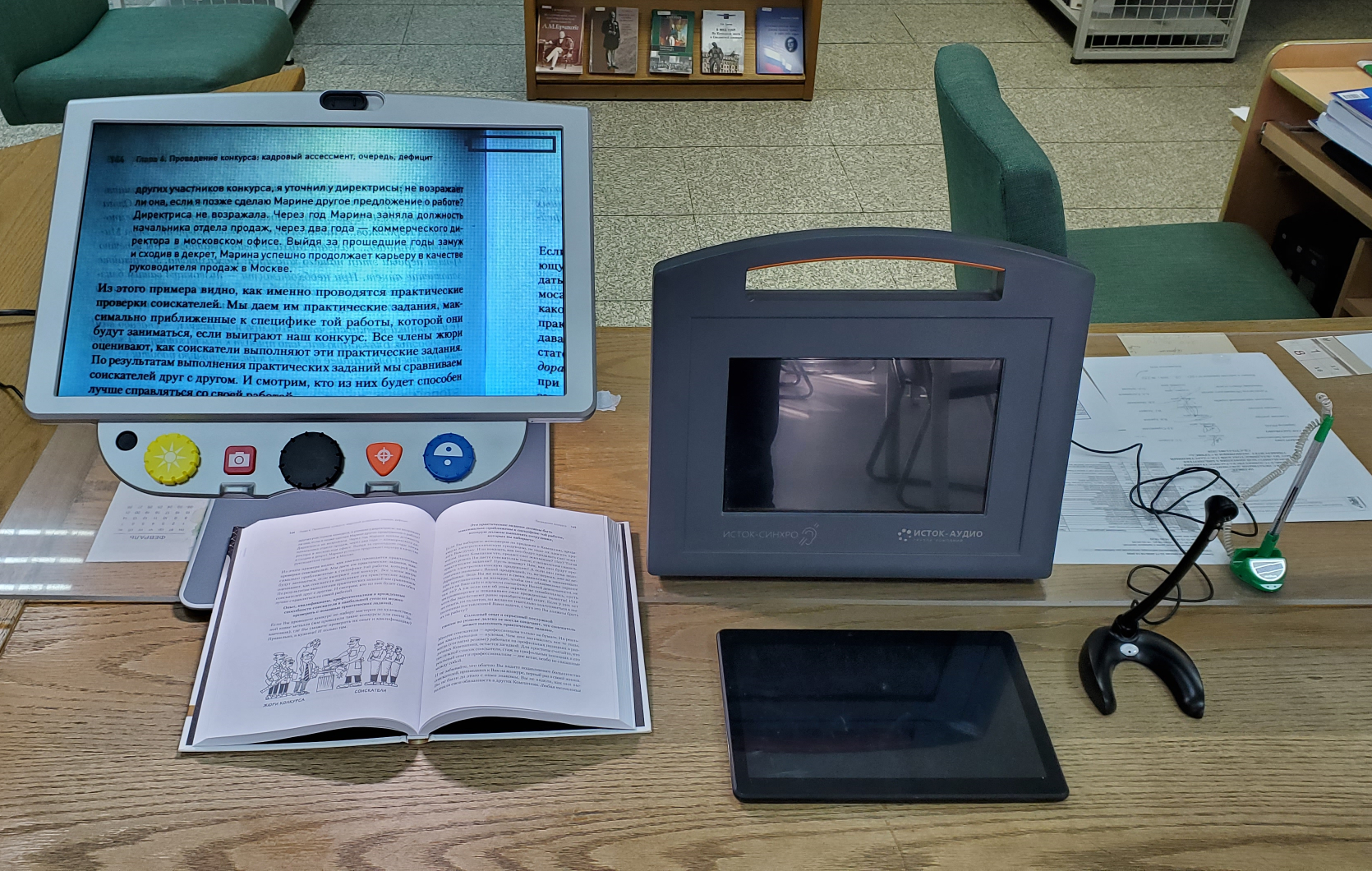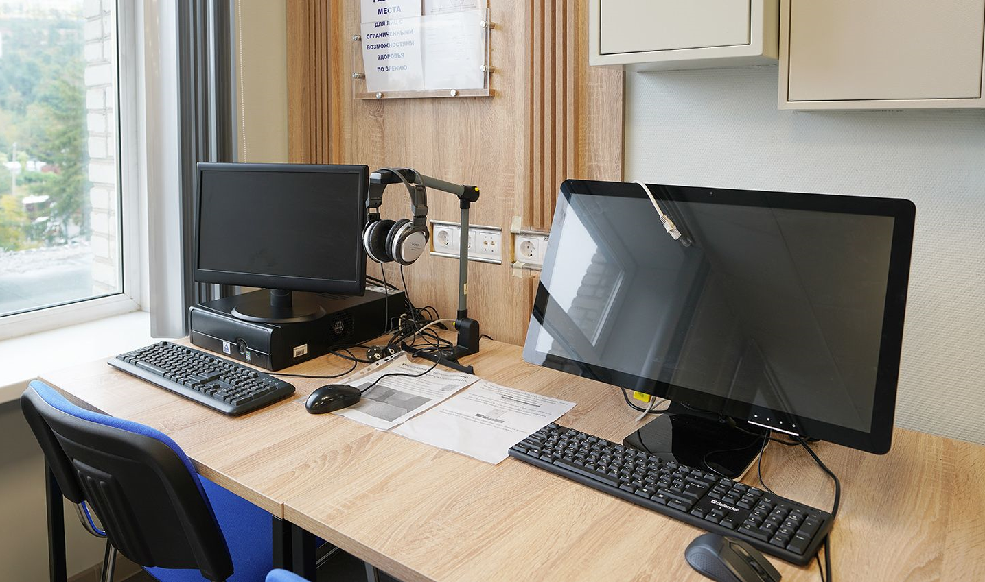 Особое внимание при обслуживании пользователей уделяется созданию комфортных условий для работы в библиотеке читателей с ограниченными возможностями здоровья. В библиотеке оборудованы современным программным обеспечением и специальным столом рабочие места для самостоятельных занятий читателей с ограничением возможностей здоровья по движению и по зрению. Стойка администратора-библиотекаря оснащена специальной техникой, предназначенной для обслуживания читателей с ограничением здоровья по слуху.