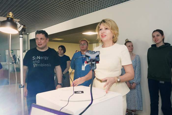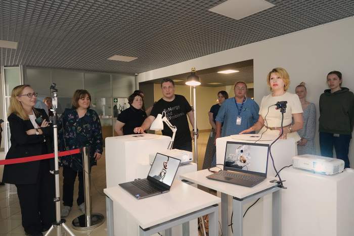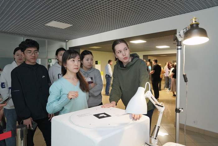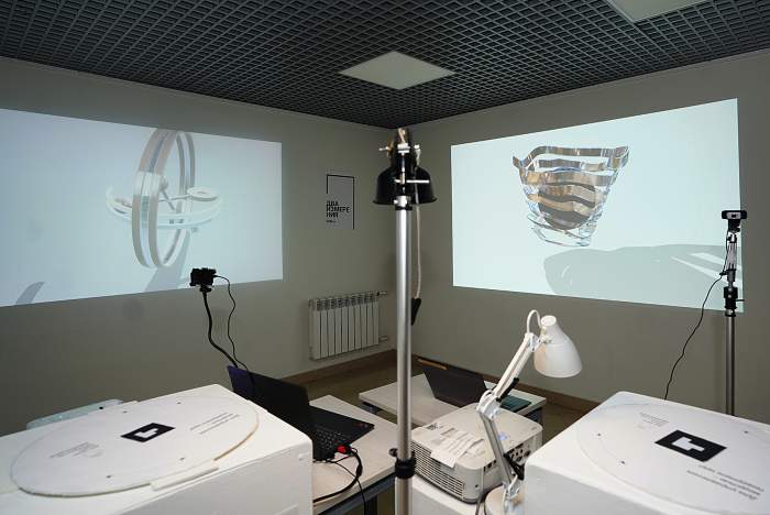 Исследовательский проект студентов и преподавателей в области визуальной коммуникации и цифрового искусства «ДВА ИЗМЕРЕНИЯ» . Проект изучает возможности взаимодействия (контакта) зрителя с виртуальным миром с помощью современных технологий и компьютерного зрения без использования какого-либо технического оборудования со стороны человека, через простые жесты, максимально доступные и интуитивно понятные каждому.На экспериментальных стендах представлены кинетические скульптуры, созданные студентами кафедры цифрового дизайна. Экспонаты доступны для активного изучения зрителем через взаимодействие с маркерами – предметами-посредниками между цифровым и реальным пространствами. На каждом стенде дана небольшая инструкция – описание возможностей пульта-управления виртуальным кинетическим предметом.