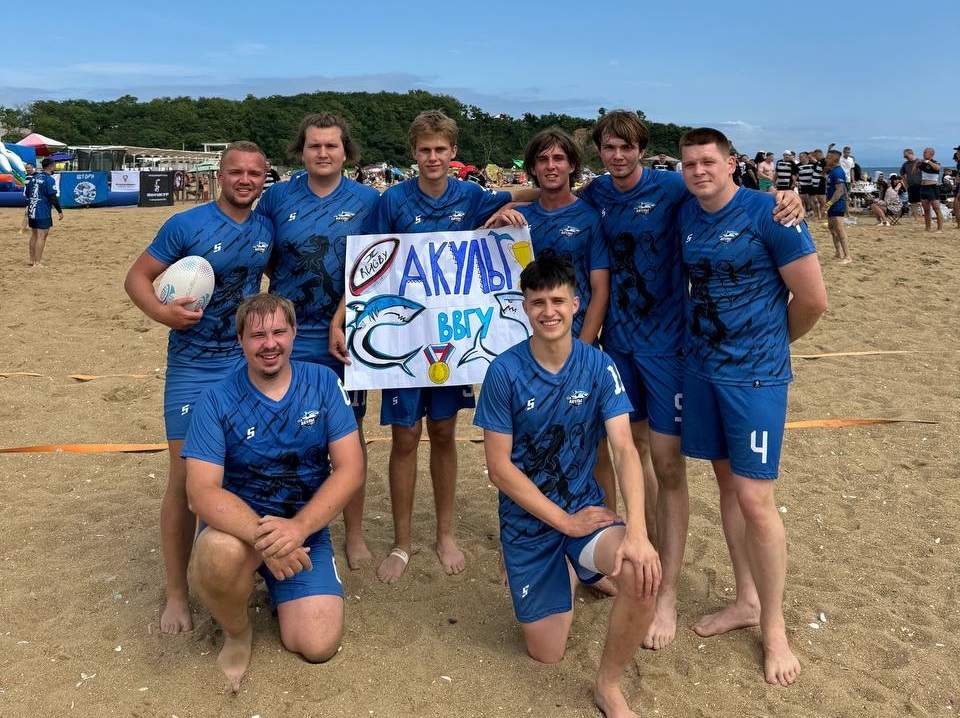 Студенческая сборная команда ВВГУ по регби спортивного клуба «Акулы» приняла участие в открытом кубке Тихоокеанского флота по пляжному регби.