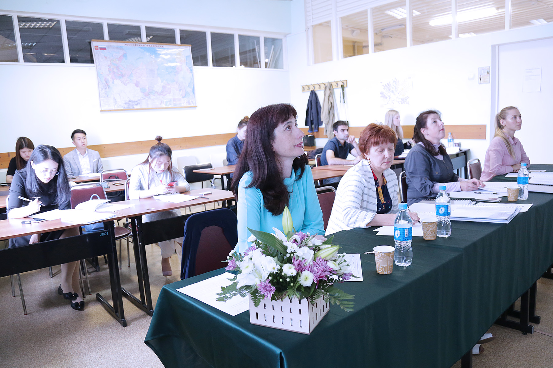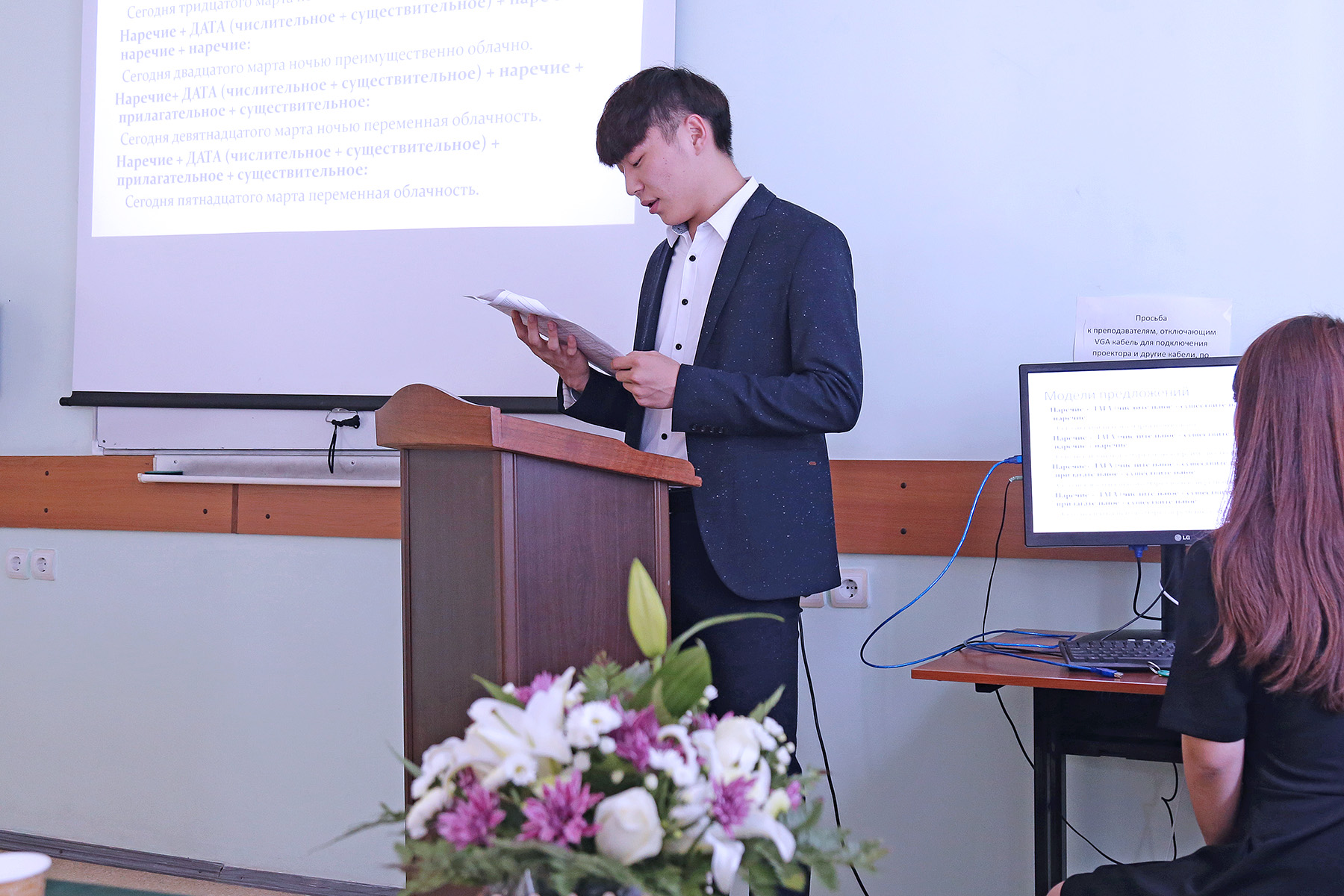 С 18 по 22 июня государственная аттестационная комиссия оценивала исследовательские работы иностранных студентов - выпускников этого года. Степень бакалавра с присвоением квалификации и выдачей диплома государственного образца о высшем профессиональном образовании по направлению подготовки Лингвистика получили 35 выпускников-иностранцев. Государственная экзаменационная комиссия состояла как из филологов самого высокого уровня: председатель комиссии - доктор филологических наук, доцент по кафедре современного русского языка, профессор кафедры русского языка и литературы ФГАОУ ВО «Дальневосточный федеральный университет» Елена Сергеевна Шереметьева; кандидат филологических наук, доцент кафедры русского языка и литературы, руководитель образовательной программы «Филология» Восточного института – Школы региональных и международных исследований ФГАОУ ВО «Дальневосточный федеральный университет» Наталья Сергеевна Милянчук; кандидат филологических наук, доцент по кафедре русского языка, директор Института иностранных языков Владивостокского государственного университета экономики и сервиса Юлия Олеговна Коновалова, так и из представителей работодателей в рамках практико-интегрированного обучения: Малашенкова Надежда Александровна – директор общества с ограниченной ответственностью «Бюро переводов «Полиглот», Калачинская Наталья Борисовна – генеральный директор общества с ограниченной ответственностью «Гавань – турцентр», Фёдорова Наталья Леонидовна – учитель китайского языка высшей квалификационной категории «Муниципального бюджетного образовательного учреждения «Средняя общеобразовательная школа №63 г. Владивостока» с углублённым изучением китайского языка. Секретарём экзаменационной комиссии была назначена Альбина Владимировна Яськова – старший преподаватель кафедры русского языка ИИЯ.