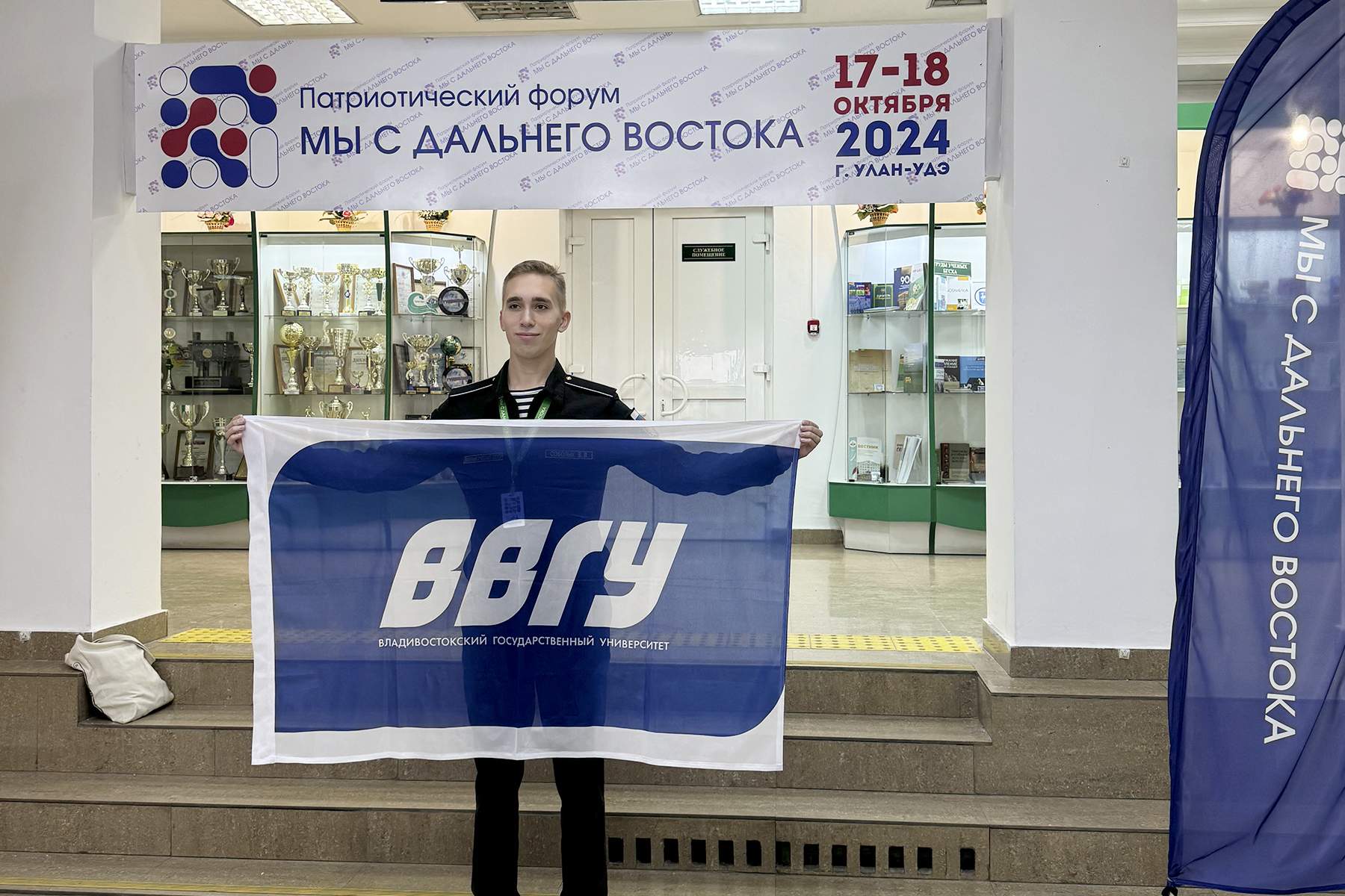 Студент Института права ВВГУ, курсант военного учебного центра Дальрыбвтуза Владислав Соболык стал участником форума «Мы с Дальнего Востока». Лидеры патриотических и волонтерских объединений из 22 вузов ДФО, а также университетов Монголии и Китая, собрались в Улан-Удэ, чтобы поделиться опытом в области гражданско-патриотического воспитания молодежи и обсудить новые формы работы в этом направлении.