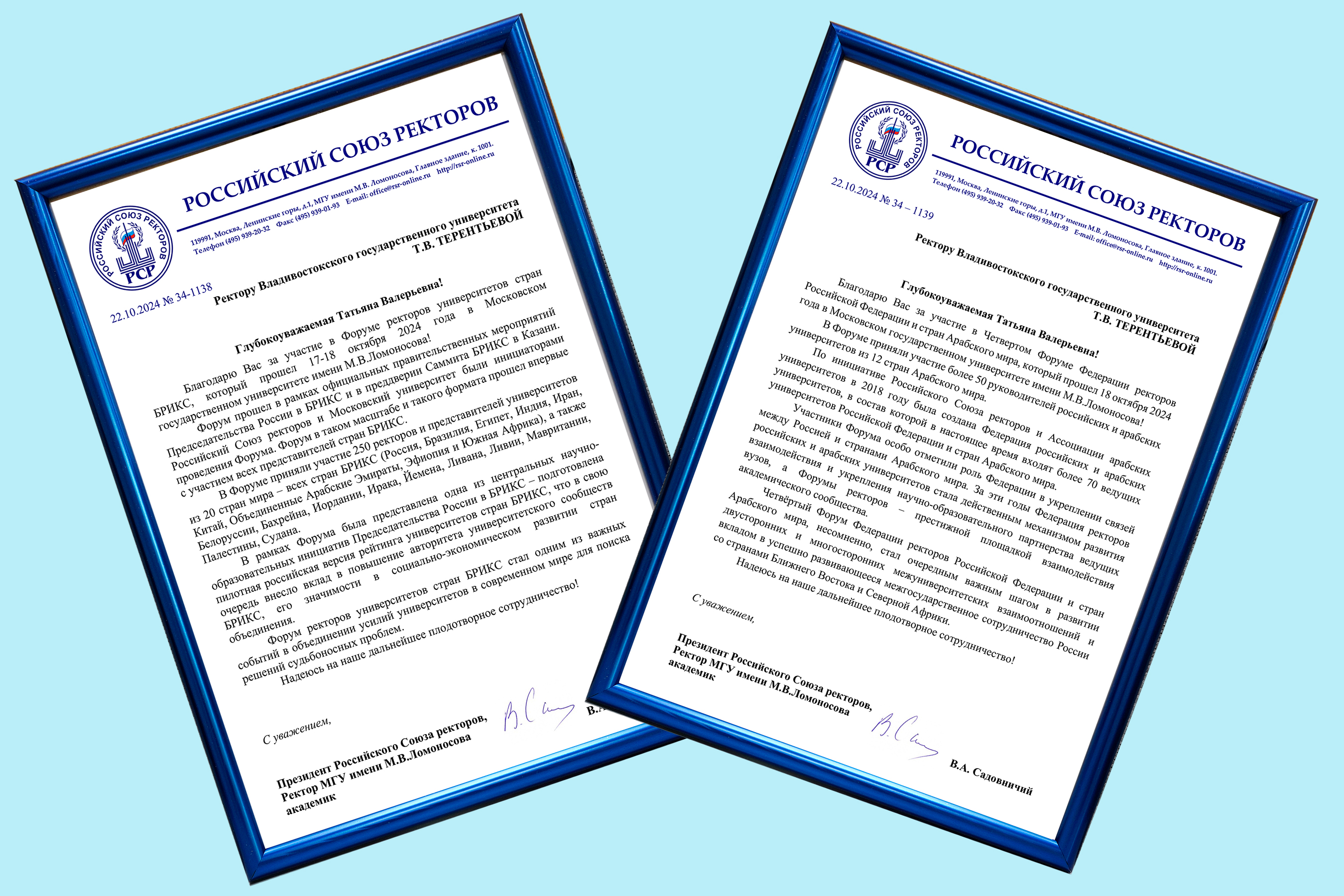 В своем письме Виктор Садовничий выразил признание ректору ВВГУ и высоко оценил готовность вузов развивать совместные проекты с БРИКС.