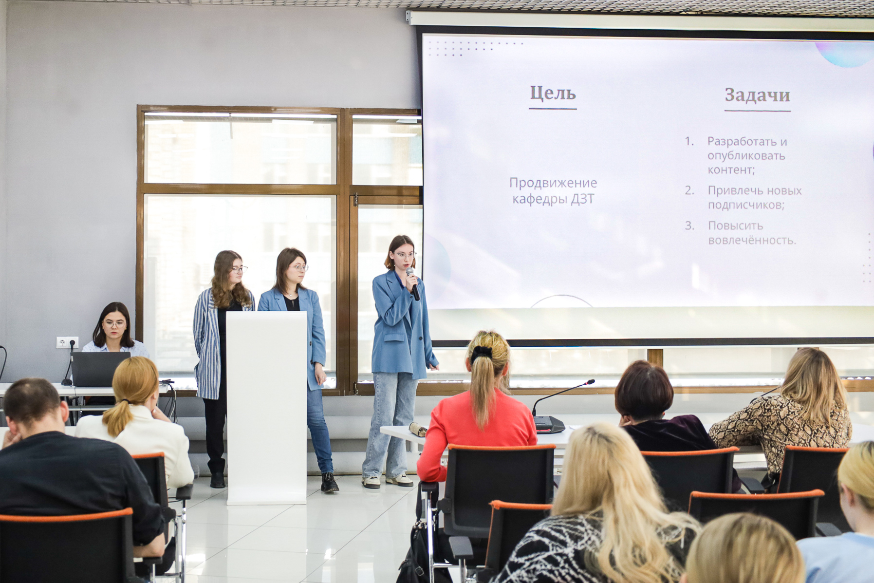 Среди других представленных работ особенно выделялся проект студентов Кафедры математики и моделирования, которые разработали продвижение своей кафедры в социальных сетях. Этот проект показал, насколько важно использовать современные медиаплатформы для популяризации научной деятельности. Студенты разработали стратегию контент-маркетинга, направленную на привлечение внимания к кафедре через различные социальные сети. Они представили примеры постов, инфографики и видео, что вызвало живой интерес у комиссии.![]()