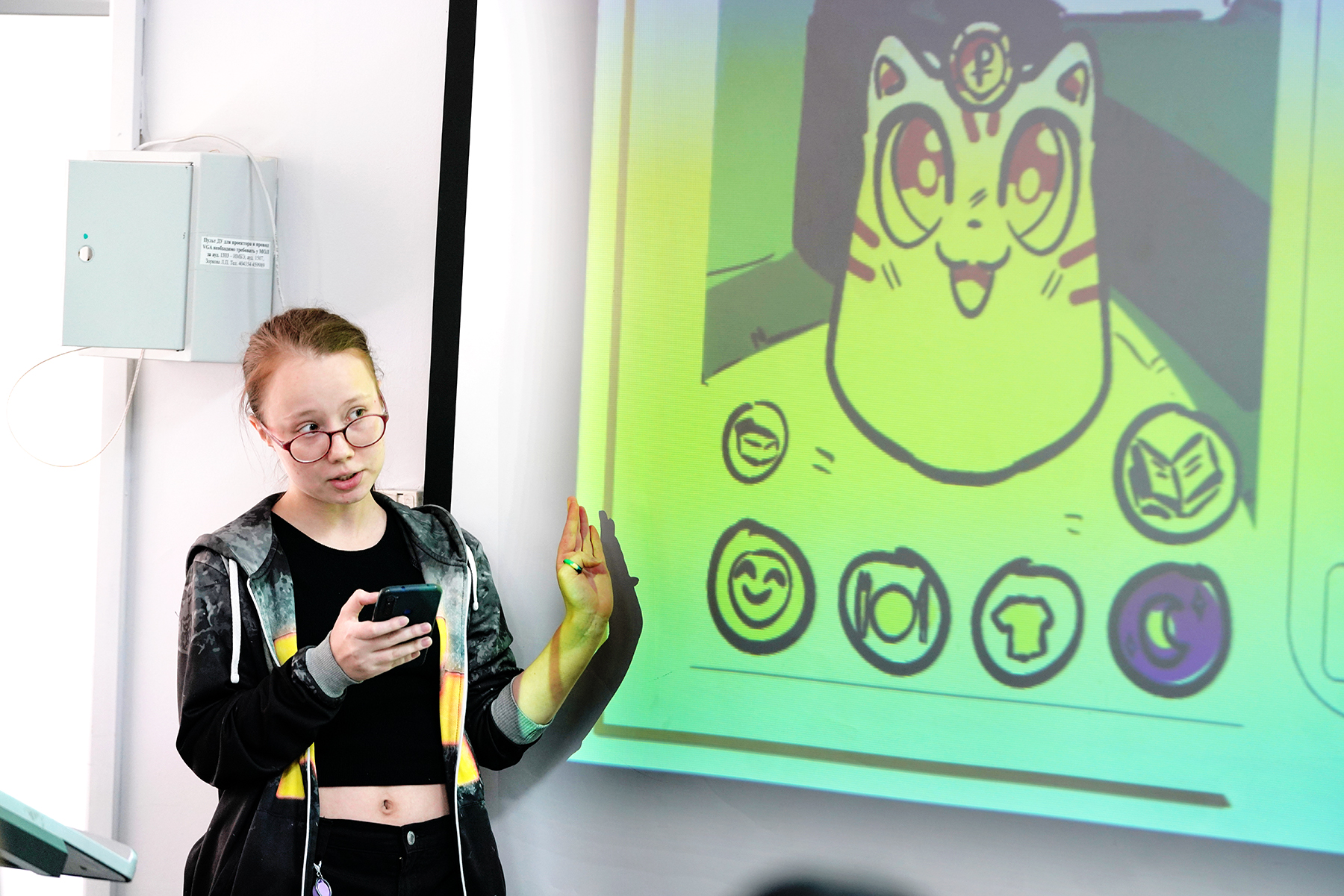 Некоторые ребята представили собственные бизнес-проекты: Лилиана Пичуева презентовала кофейню, Дарья Терендина – автомат клиники на базе искусственного интеллекта, с помощью которого можно сделать скрининг состояния здоровья. Анна Карпенко уже несколько лет работает над мобильным приложением-игрой по обучению функциональной грамотности школьников.