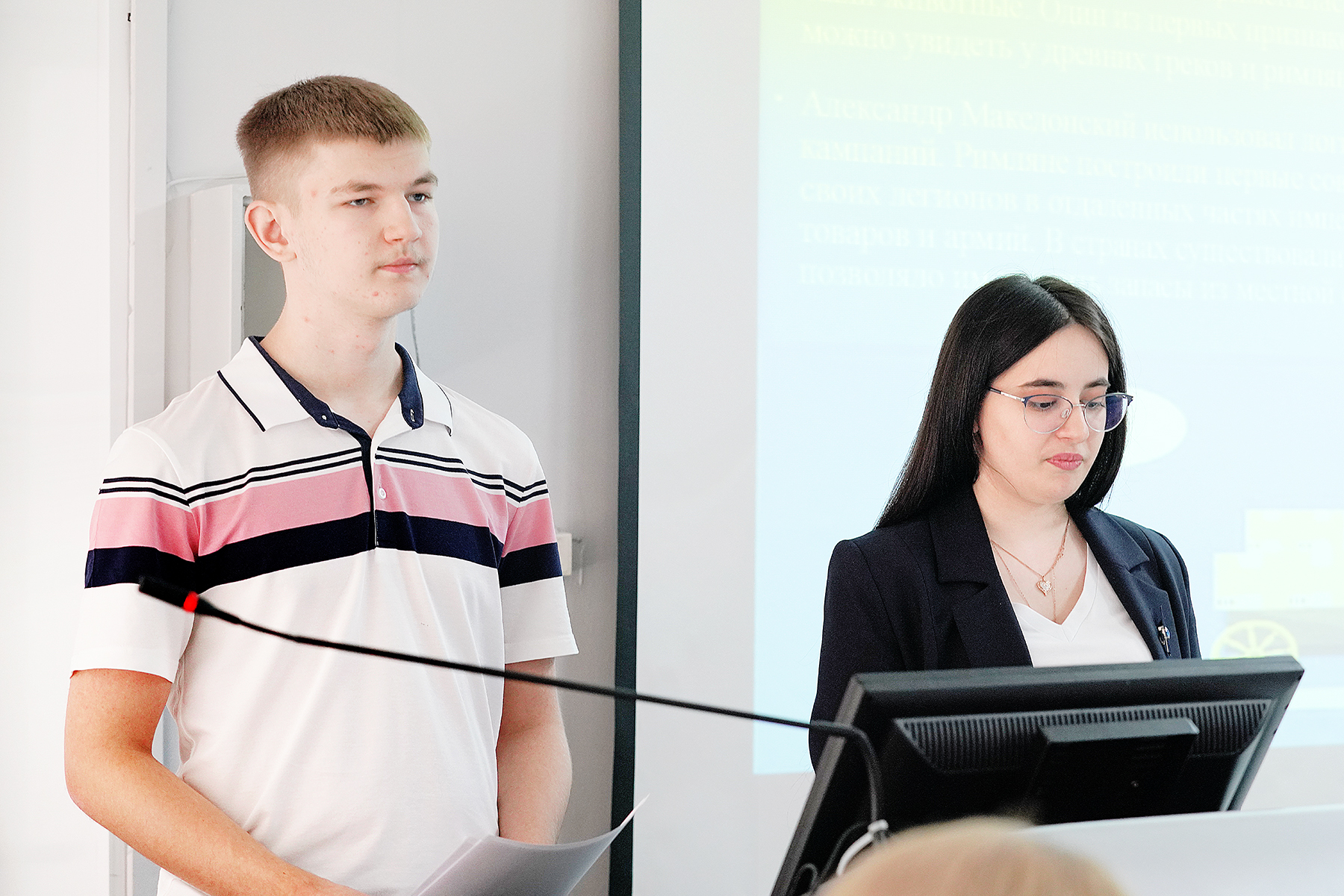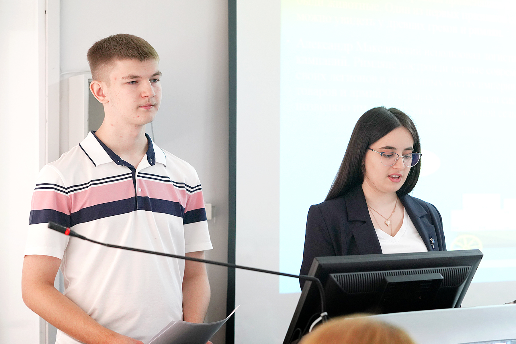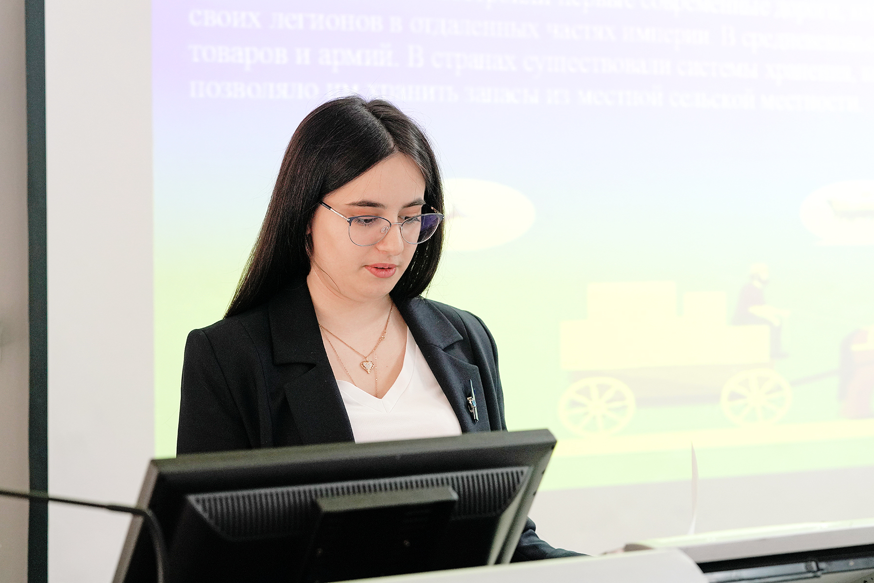 На презентациях от Валерии Глуховой и Светланы Гришиной студенты узнали о предпринимательстве в Приморском крае и его ярком представителе – основателе российской сети DNS Дмитрии Алексееве, от Вероники Калпинской – об истории русских денег от Древней Руси до сегодняшних дней.