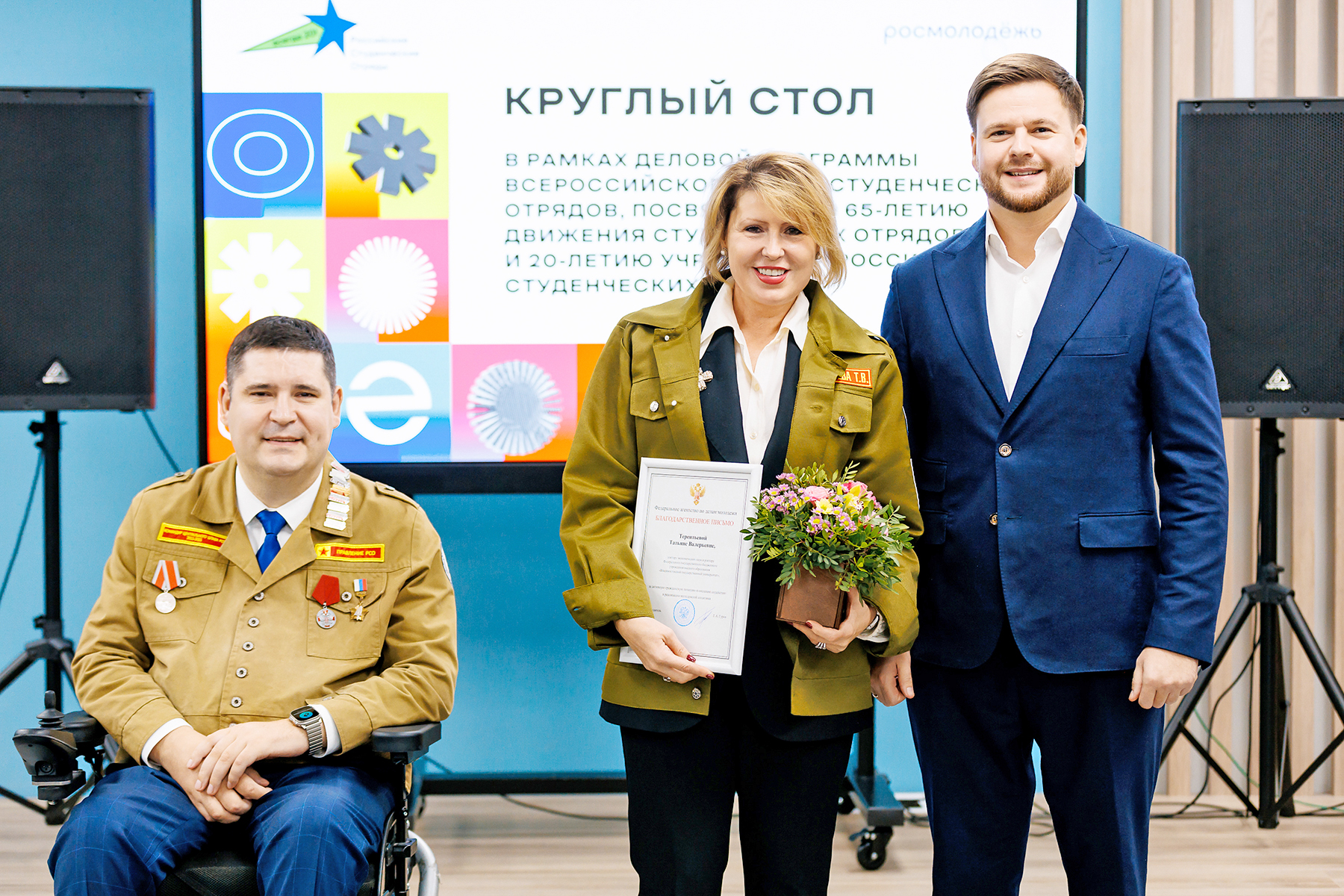 В рамках Всероссийского слёта состоялся круглый стол в Федеральном агентстве по делам молодёжи (Росмолодёжь), на котором Благодарственным письмом за активную поддержку движения студенческих отрядов в университете, высокий вклад в развитие молодежной политики страны награждена ректор ВВГУ Татьяна Терентьева.