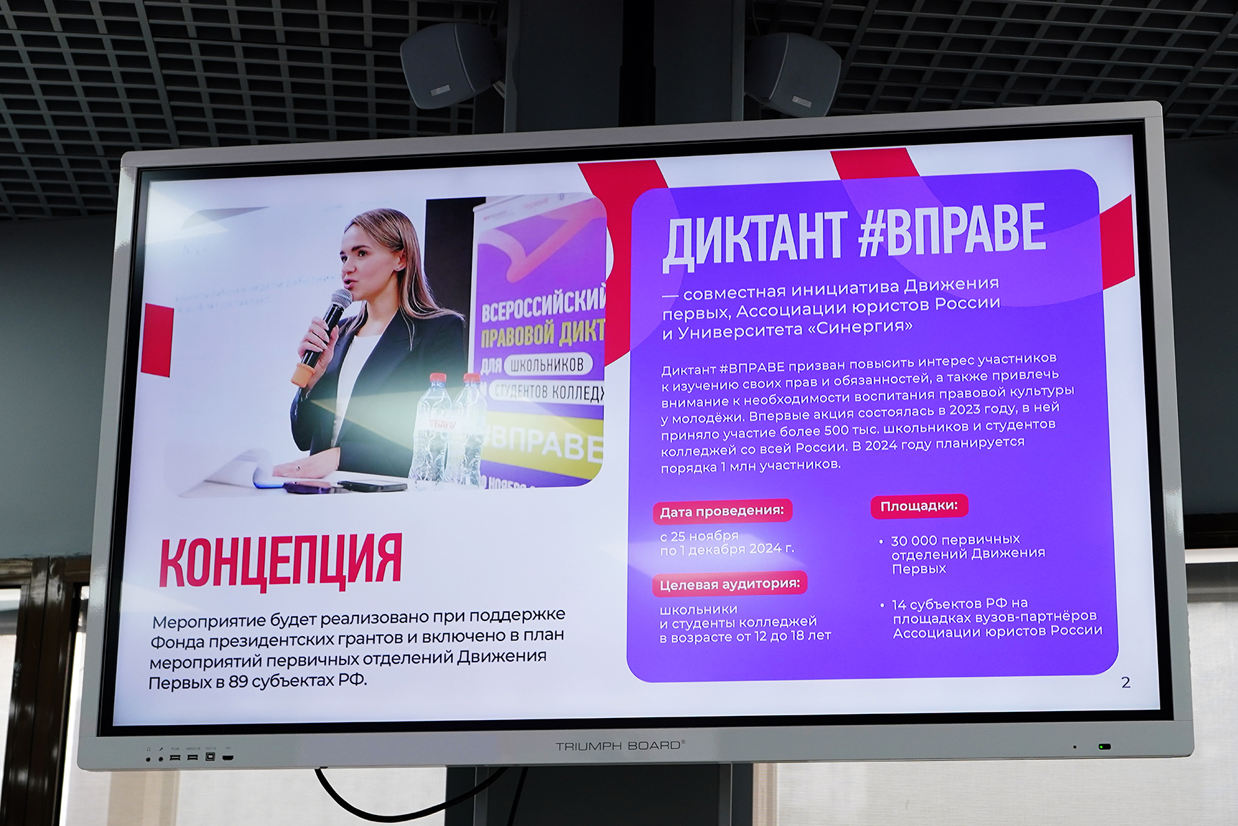 Проект #ВПРАВЕ осуществляется по всей России. Мероприятие организовано при поддержке Фонда президентских грантов, Общероссийской общественной организации «Ассоциация юристов России», общероссийского общественно-государственного движения детей и молодёжи «Движение Первых» и Московского финансово-промышленного университета «Синергия».
