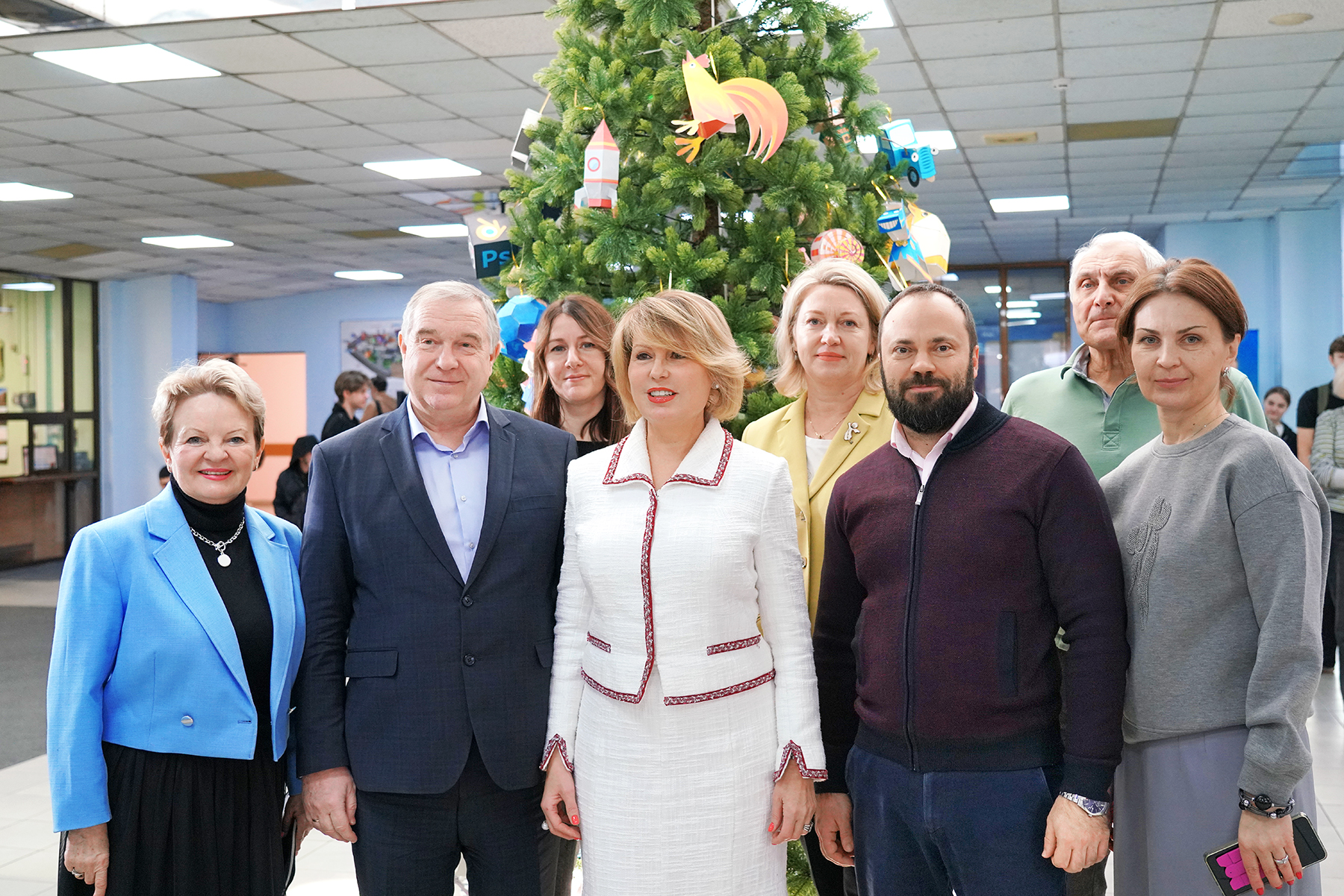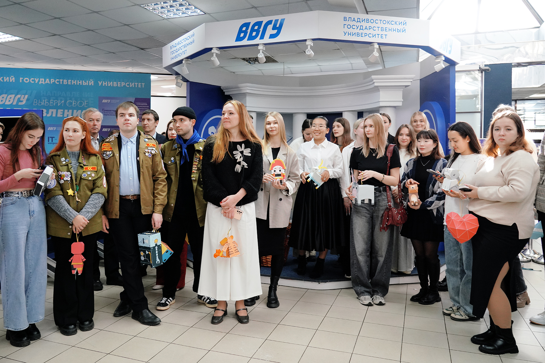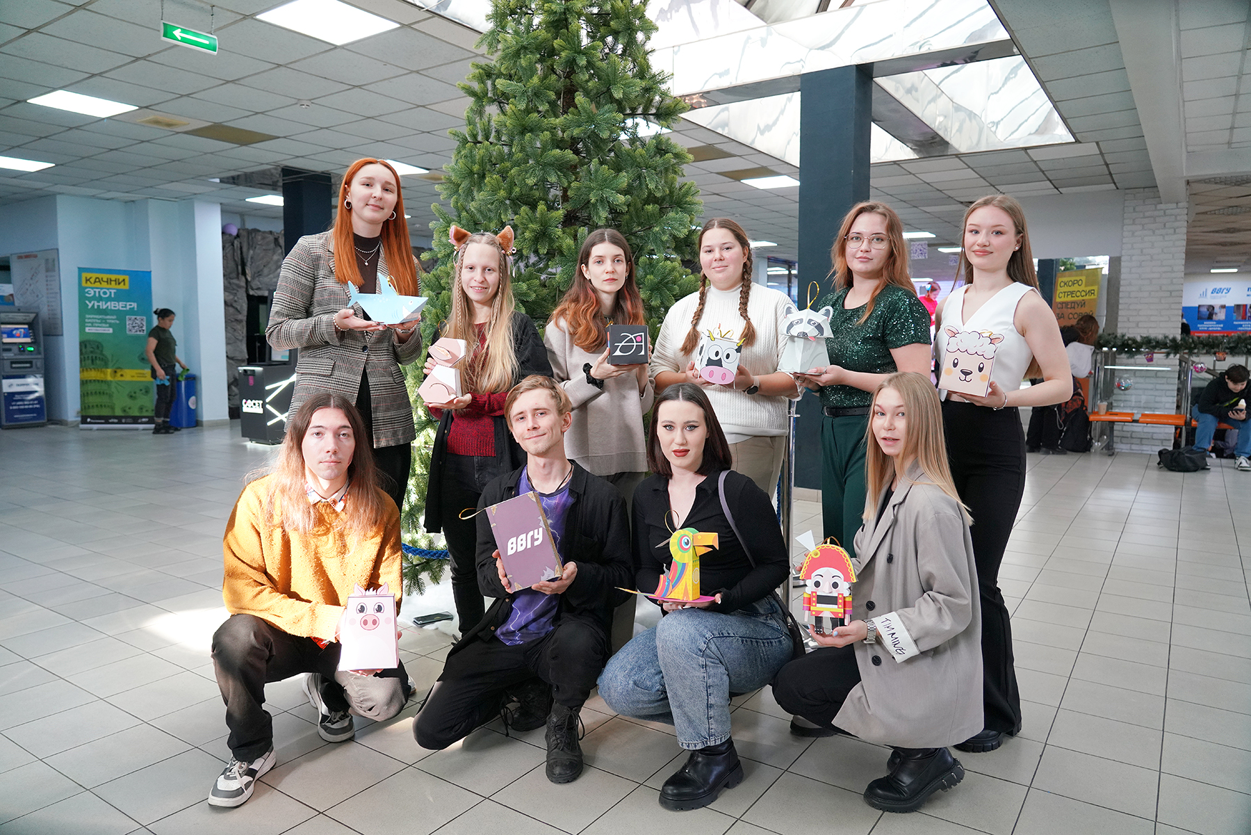 В понедельник, 9 декабря, в вузе начала работать новогодняя мастерская, где студенты и сотрудники смогли своими руками сделать ёлочные игрушки. А уже в четверг, 12 декабря, лучшими из них и украсили главную ёлку в Зимнем саду ВВГУ. Мероприятие посетили лидеры студенческих объединений, директора институтов, ректор вуза Татьяна Терентьева и весь проректорский состав.