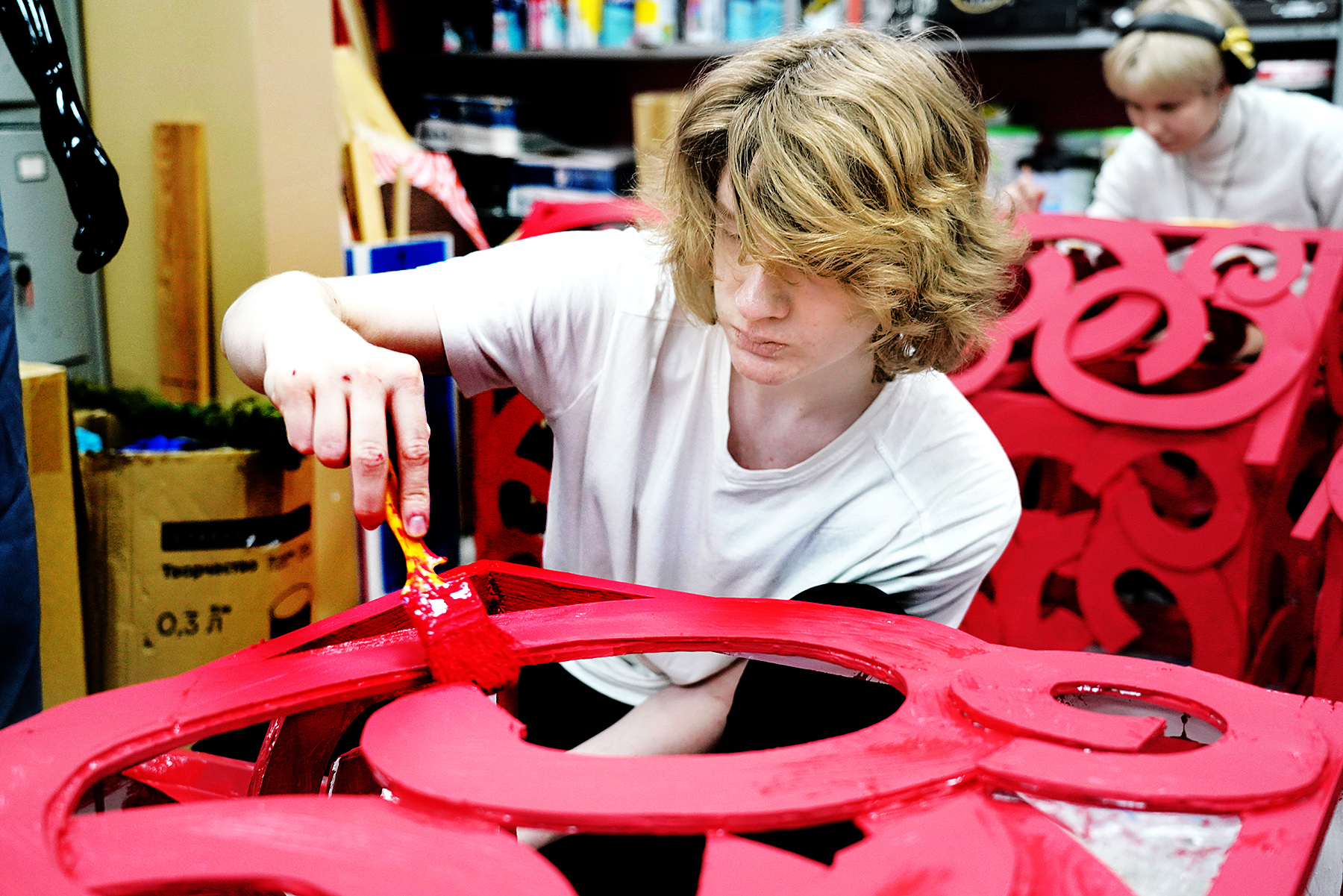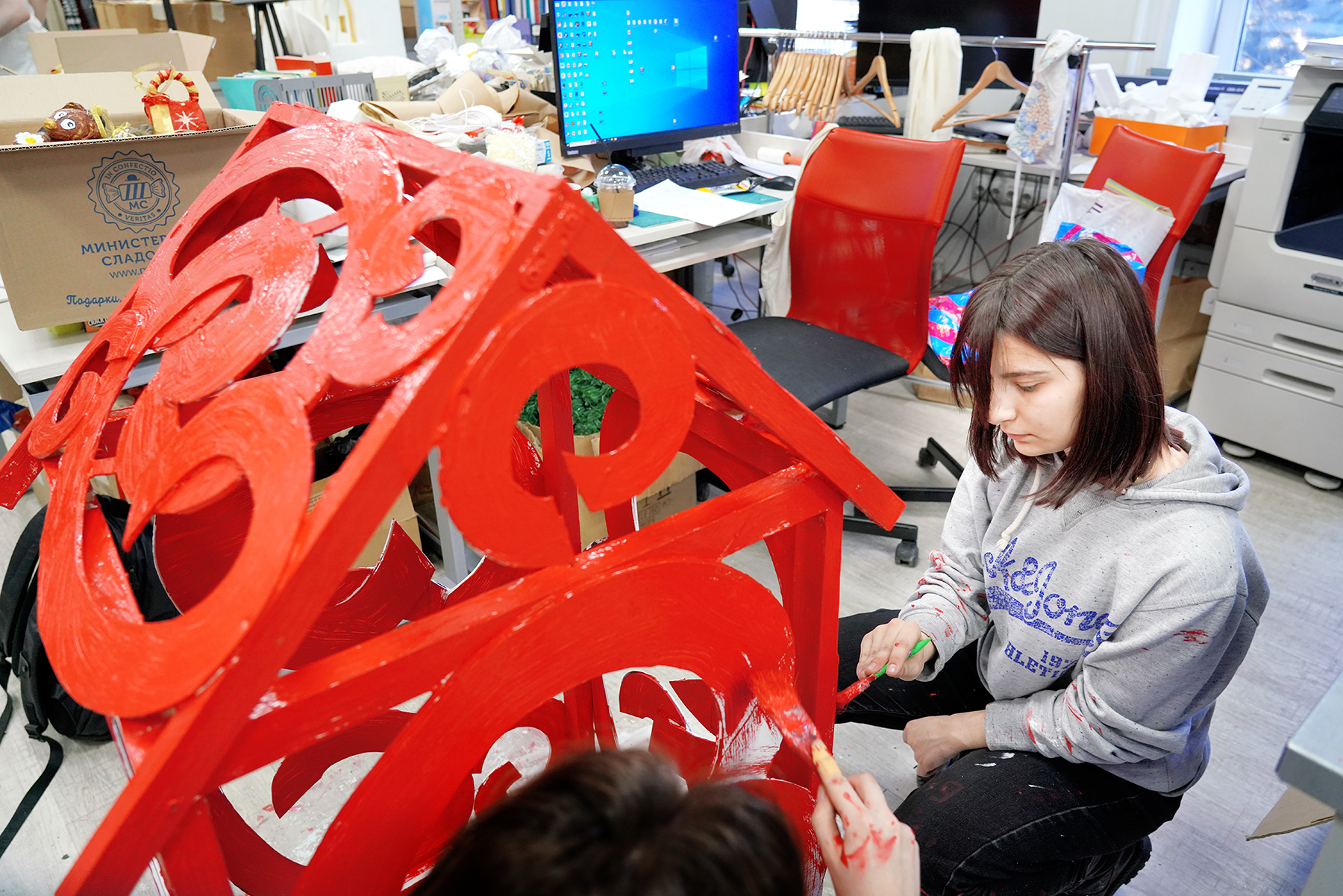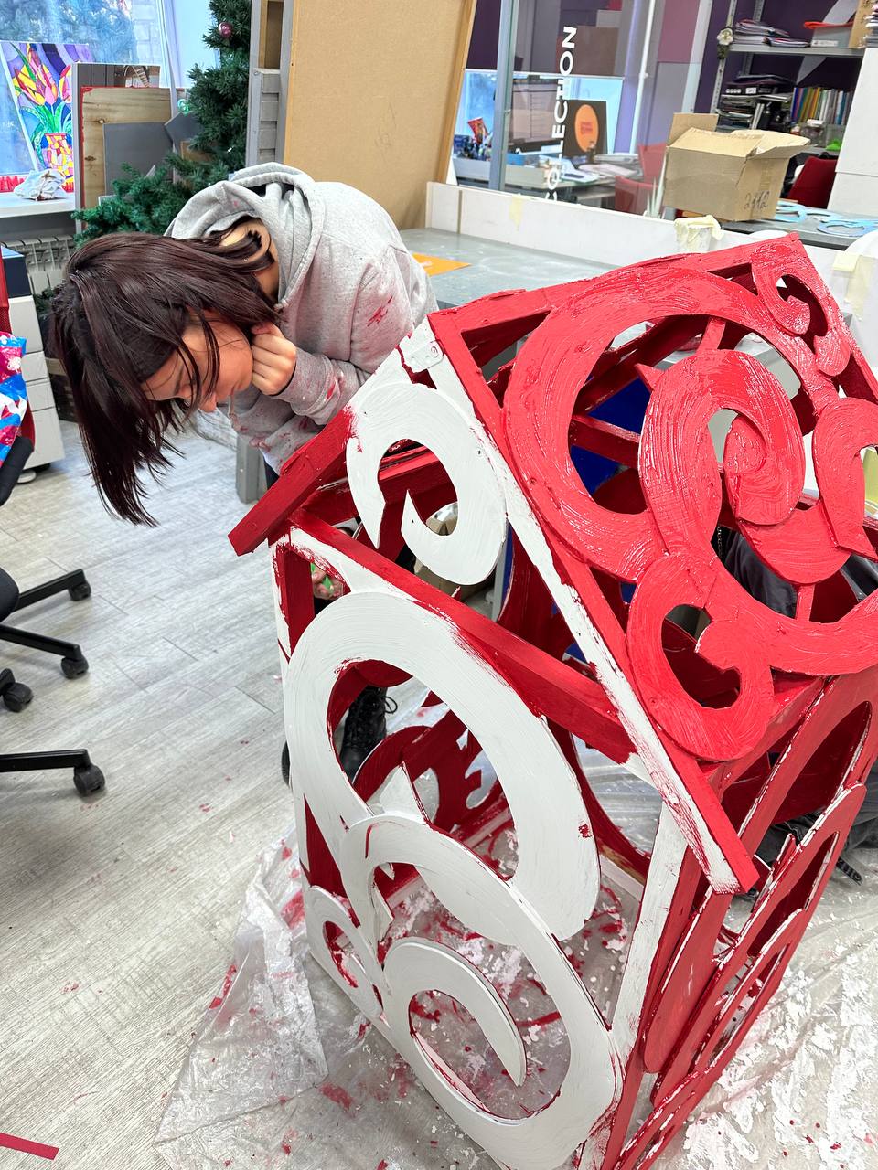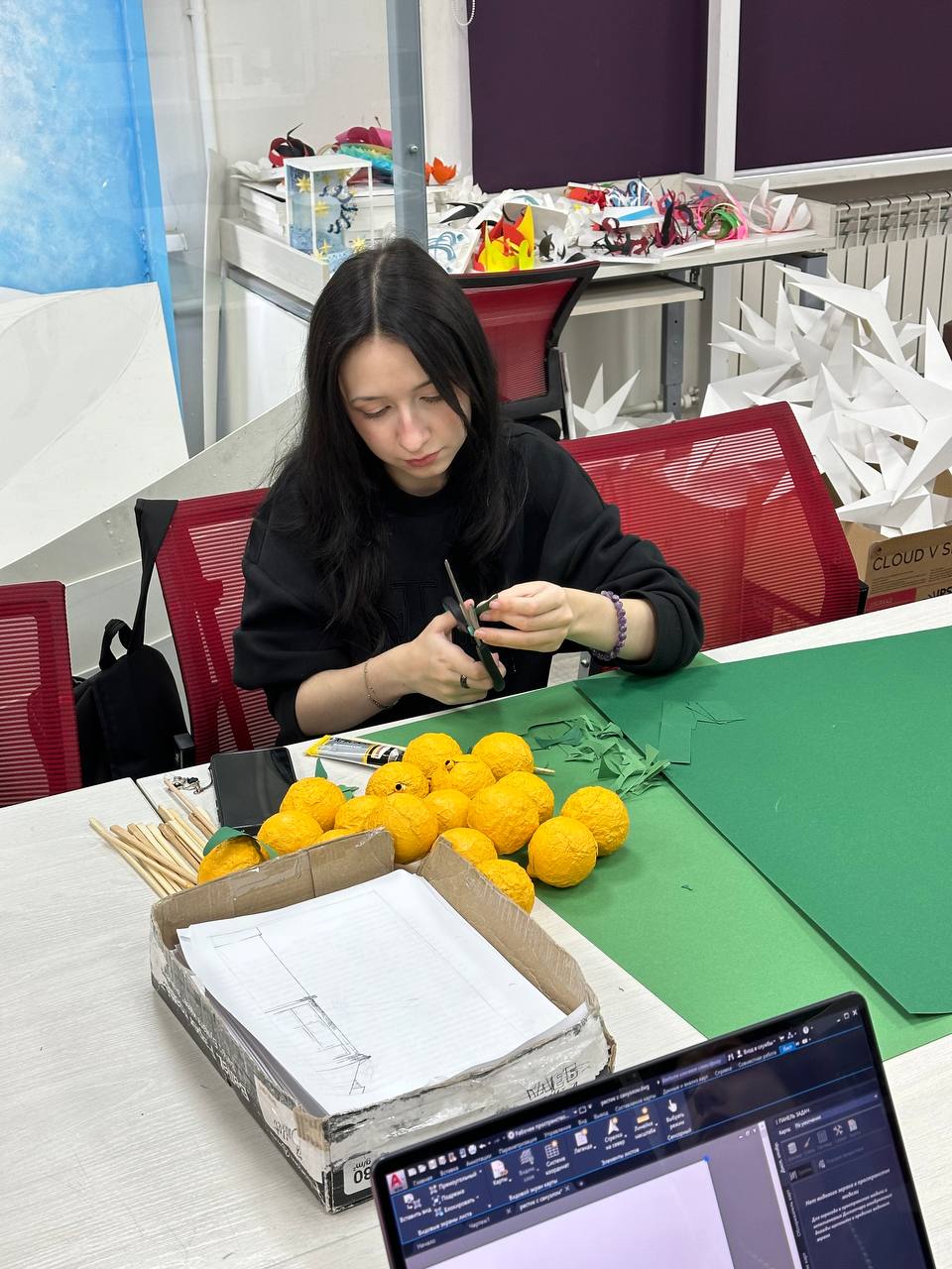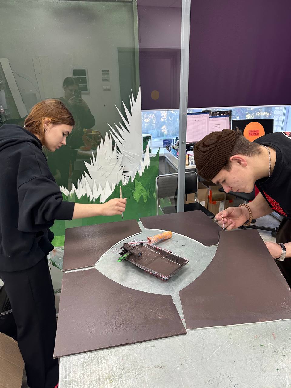 Студенты работали в командах: одни занимались внутренней отделкой, вторые – уличным декором.