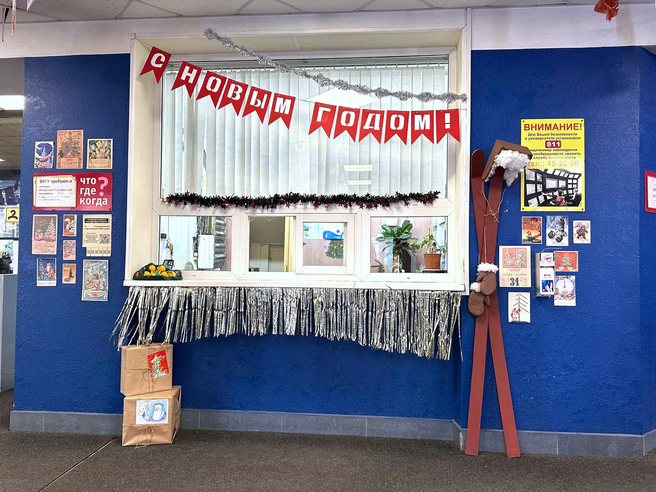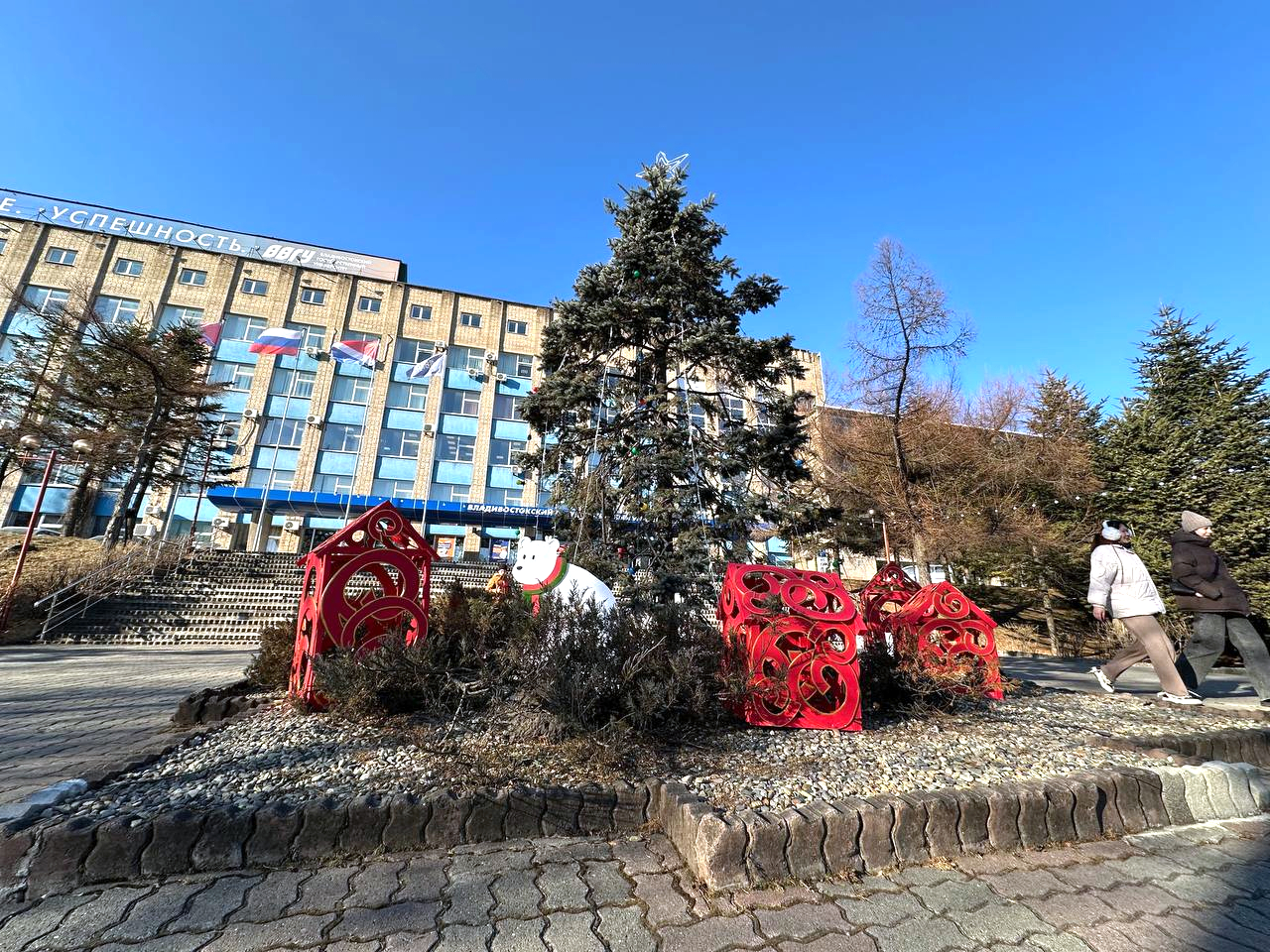 Новые фотозоны появились к Новому году во Владивостокском государственном университете. Волшебные сани и лесные жители ожидают студентов и сотрудников вуза у главного входа в ВВГУ, а в холле встречают почтовый пост, елка с персонажами мультфильмов и съемочная площадка эфира «Голубого огонька». Все это своими руками сделали студенты направления «Дизайн» Академического колледжа ВВГУ.