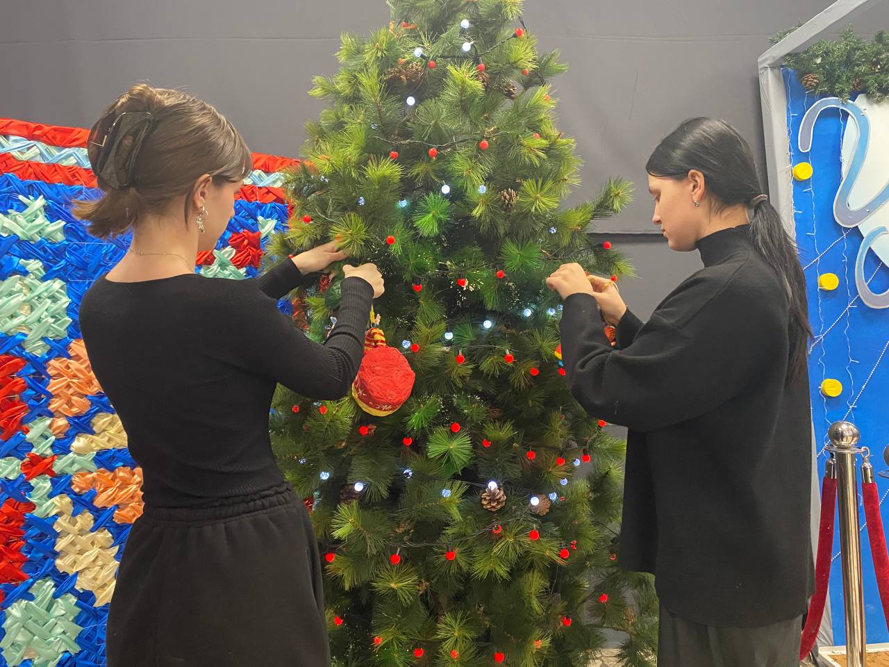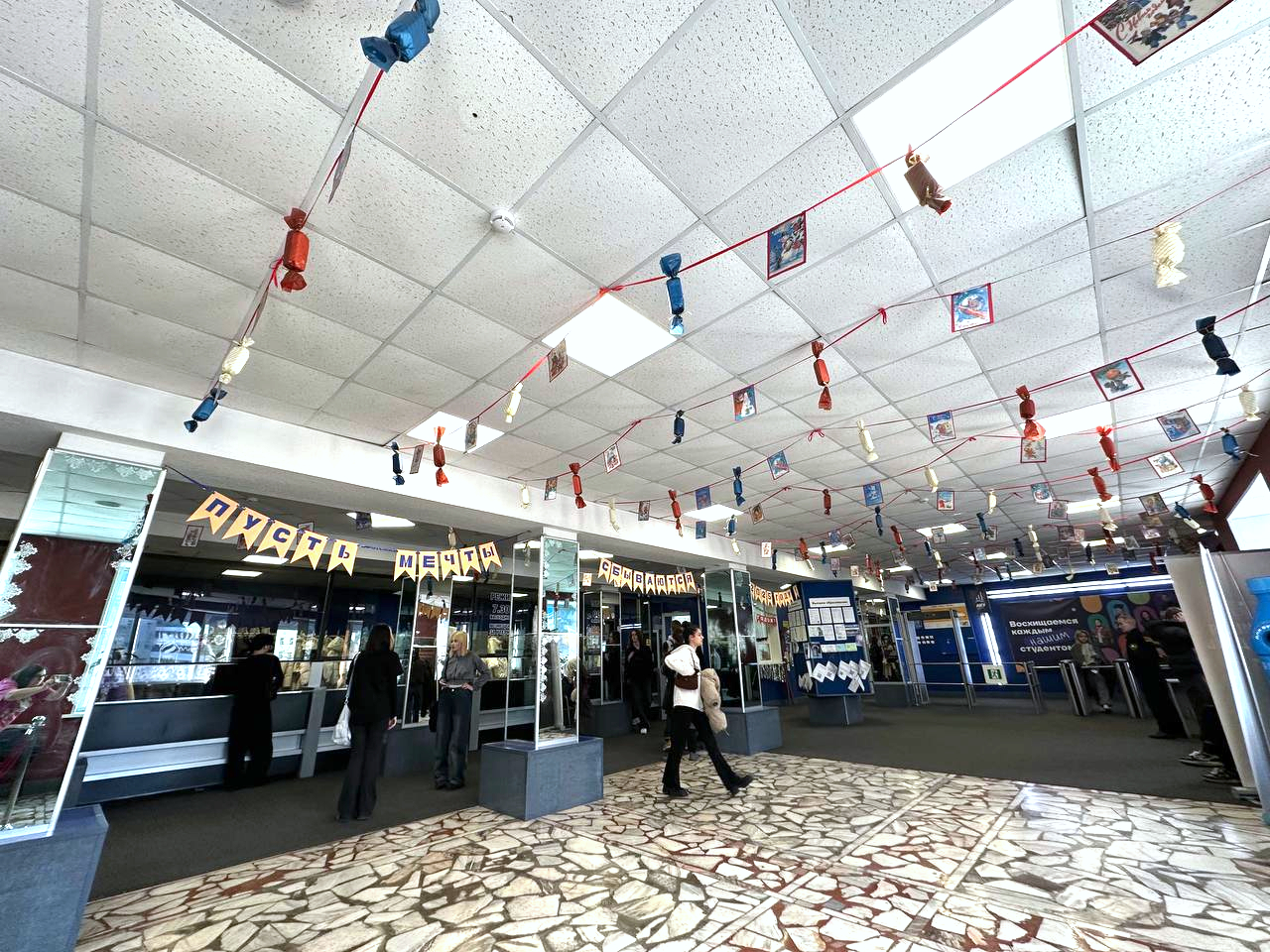 Студенты Академического колледжа ВВГУ не впервый раз занимаются декорированием пространств вуза к Новому году. В прошлом году ребята оформляли Зимний сад.