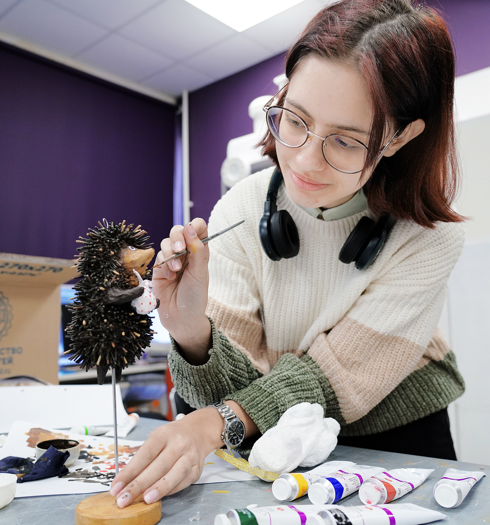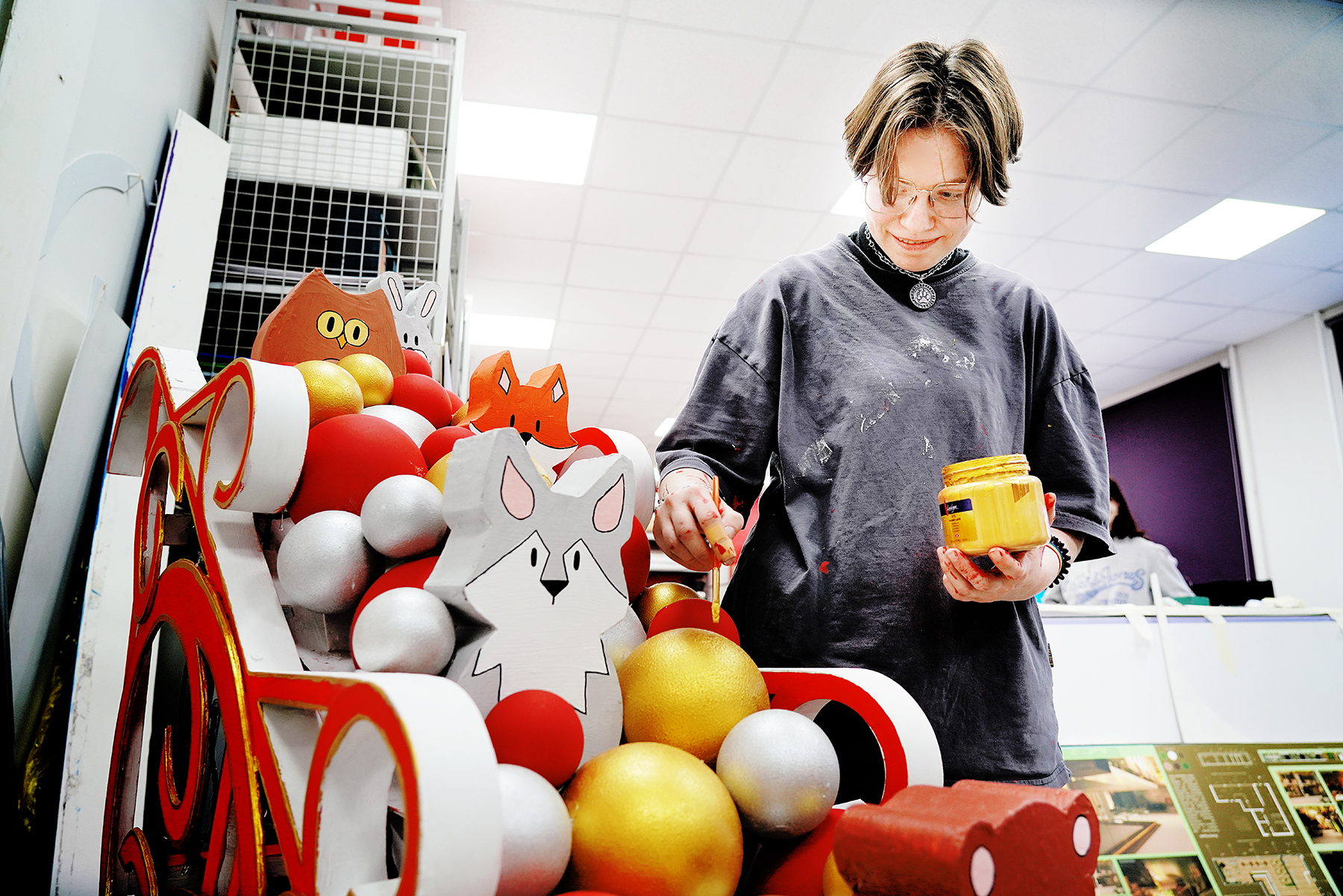 Проект занял около шести недель – в нем участвовали дизайнеры колледжа всех курсов. После формирования концепции ребята распределились по группам и приступили к работе.