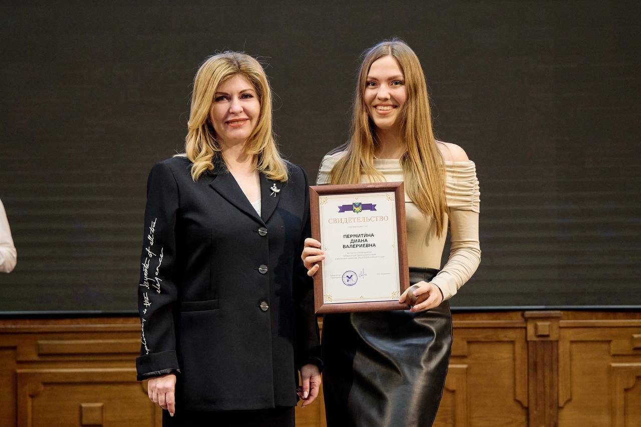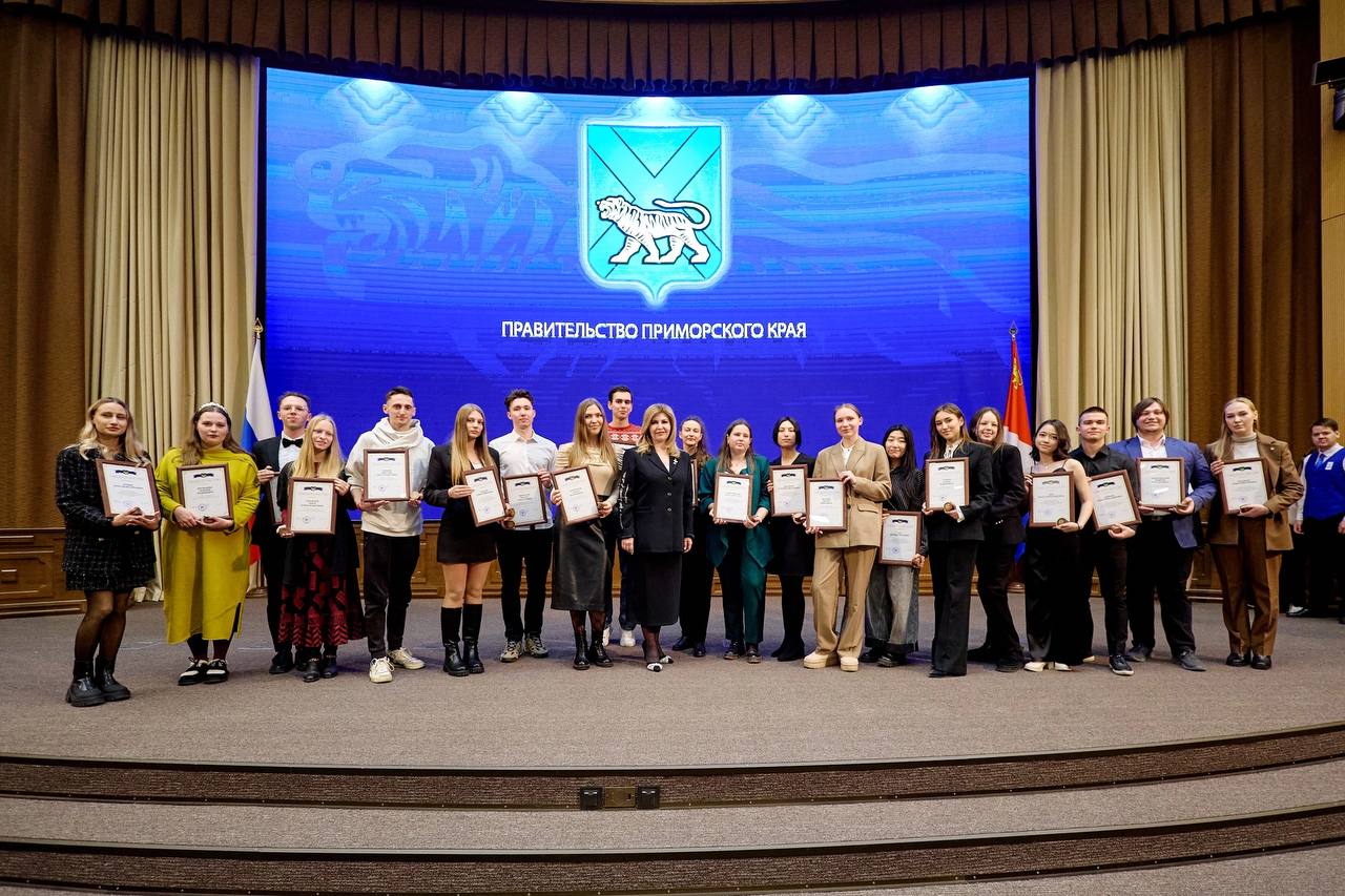 Свидетельства стипендиатов получили студенты, проявившие себя в учёбе, науке, творчестве, добровольчестве и спорте. Награды от лица главы региона учащимся вручила заместитель председателя правительства Приморского края Елена Бронникова.