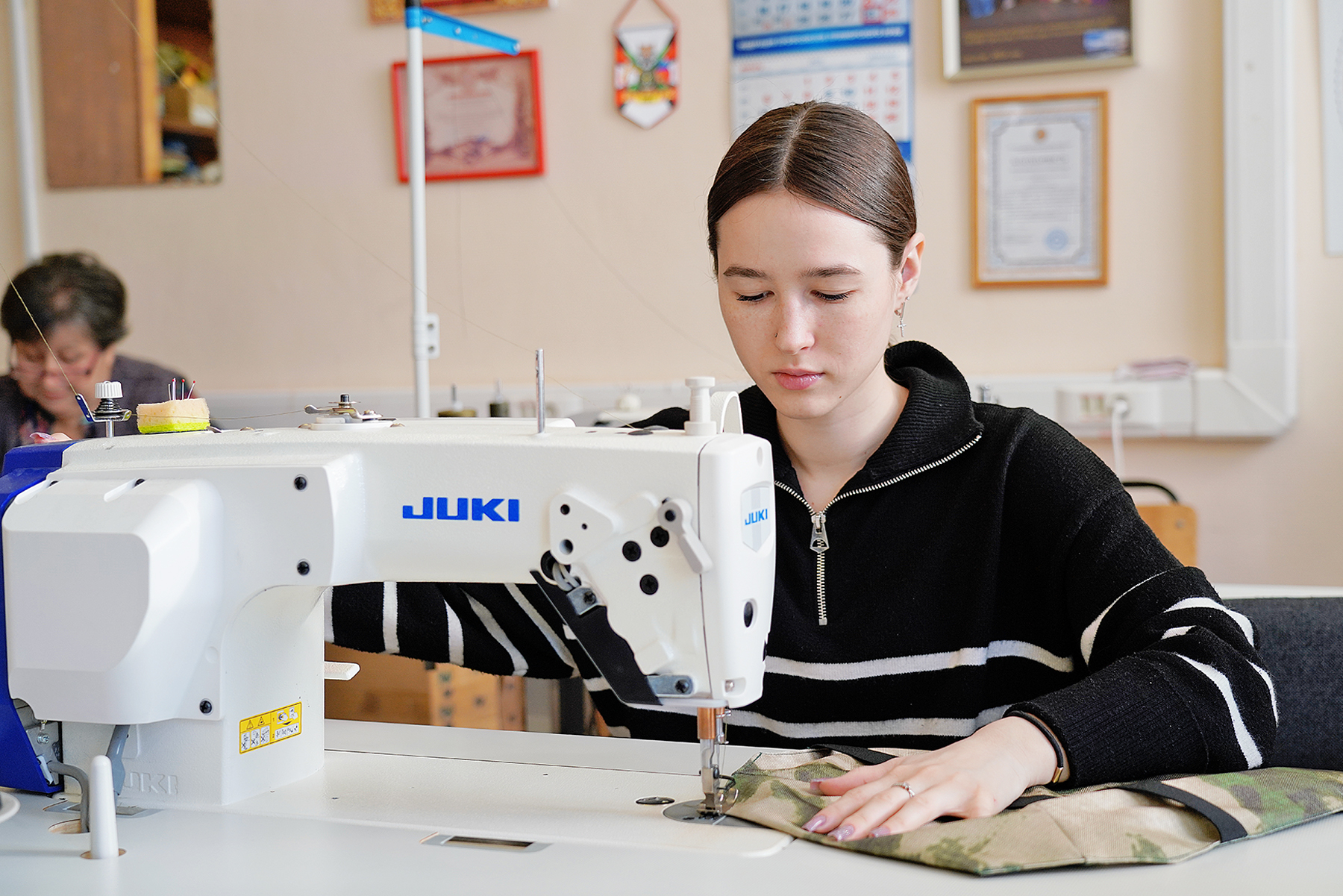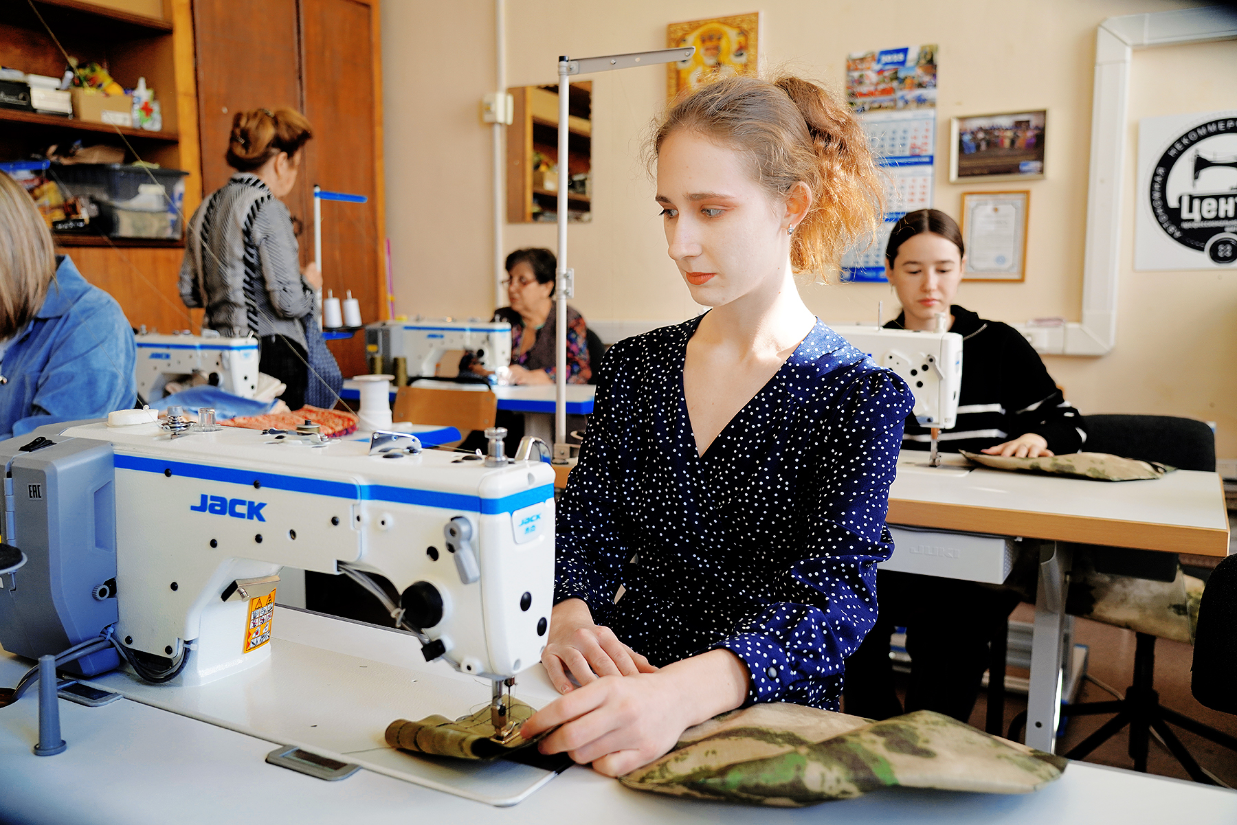 Студентки колледжа работали в цеху «Центра профессионального шитья» в рамках реализации программы «Обучение служением». Девушки занимались оцифровкой лекал амуниции, помогали волонтёрам отшивать тактические носилки, пятиточечники, подсумки и эвакуационные стропы. Каждый элемент снаряжения уникален – изготовлен руками приморцев.